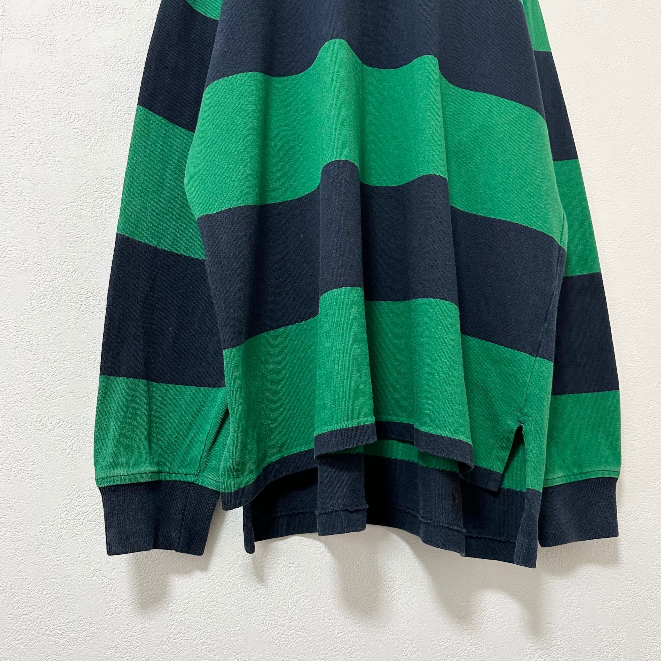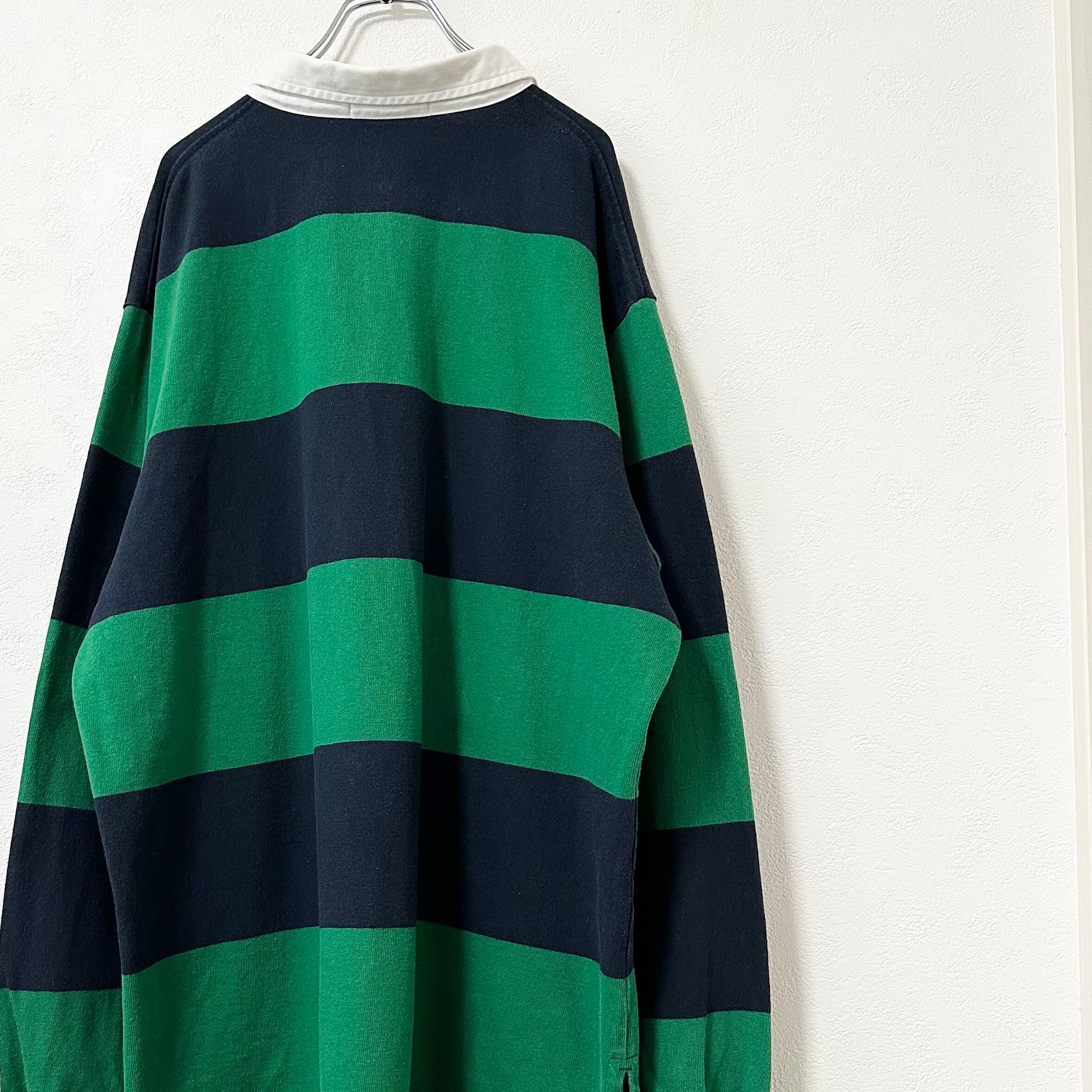 90s★Polo Ralph Lauren/ポロ ラルフローレン★ラガーシャツ★ボーダー★グリーン×ネイビー×ホワイト/緑紺★XL