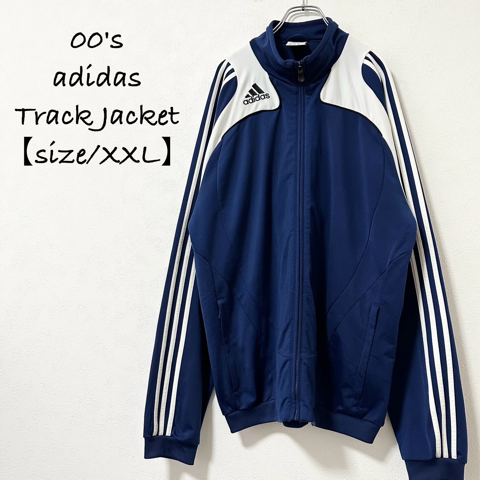 美品★00s★adidas/アディダス★ジャージ★トラックジャケット★レトロ★ネイビー×ホワイト/紺白★XXL