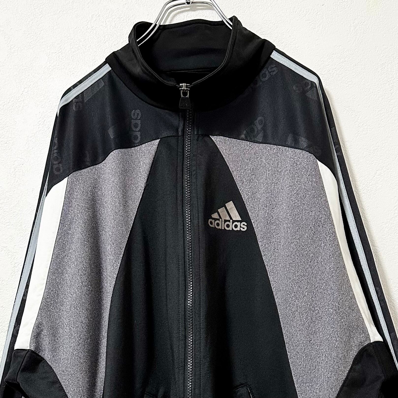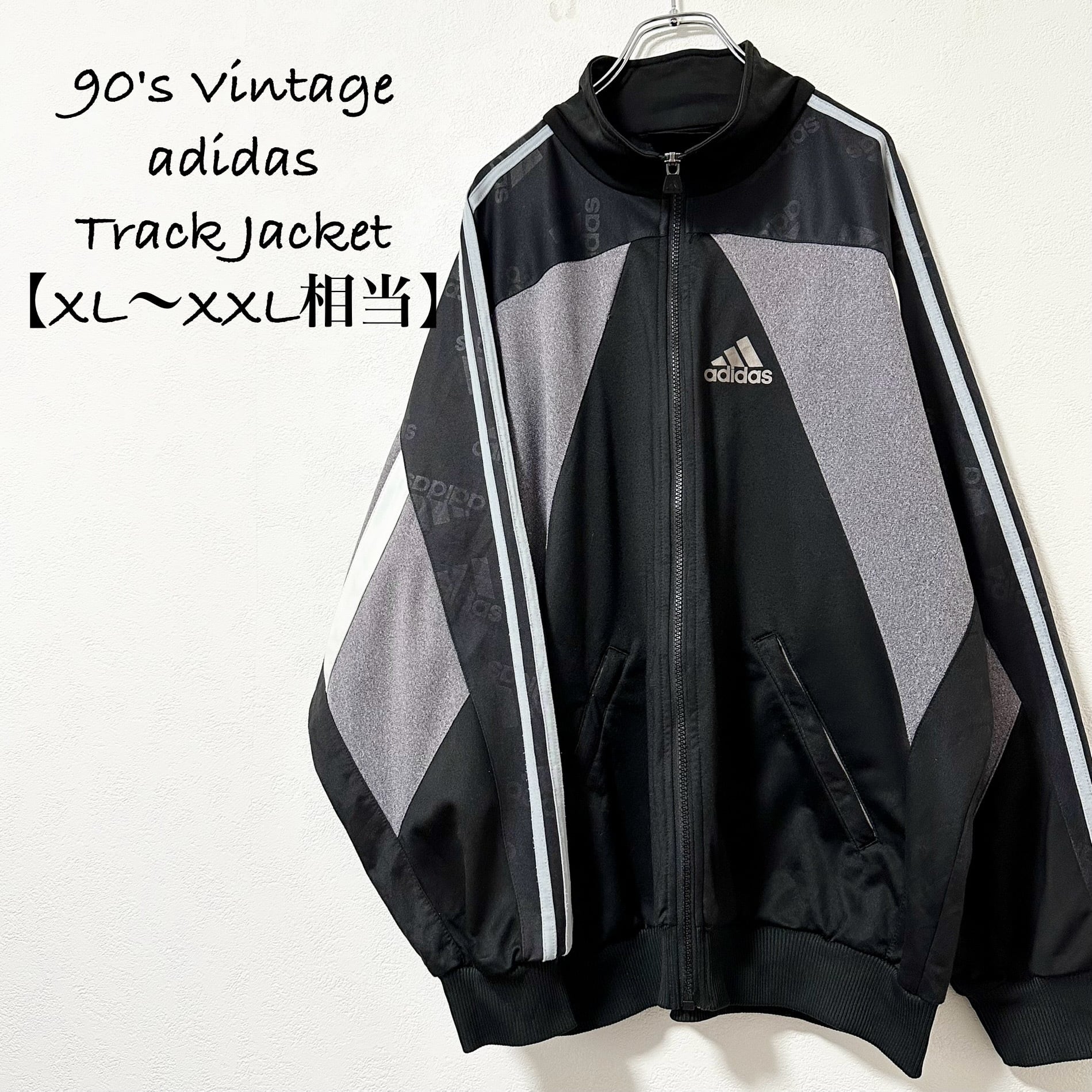 極レア★90s★adidas/アディダス★ジャージ★トラックジャケット★レトロ★ブラック/黒×グレー×ホワイト/白★XXL相当