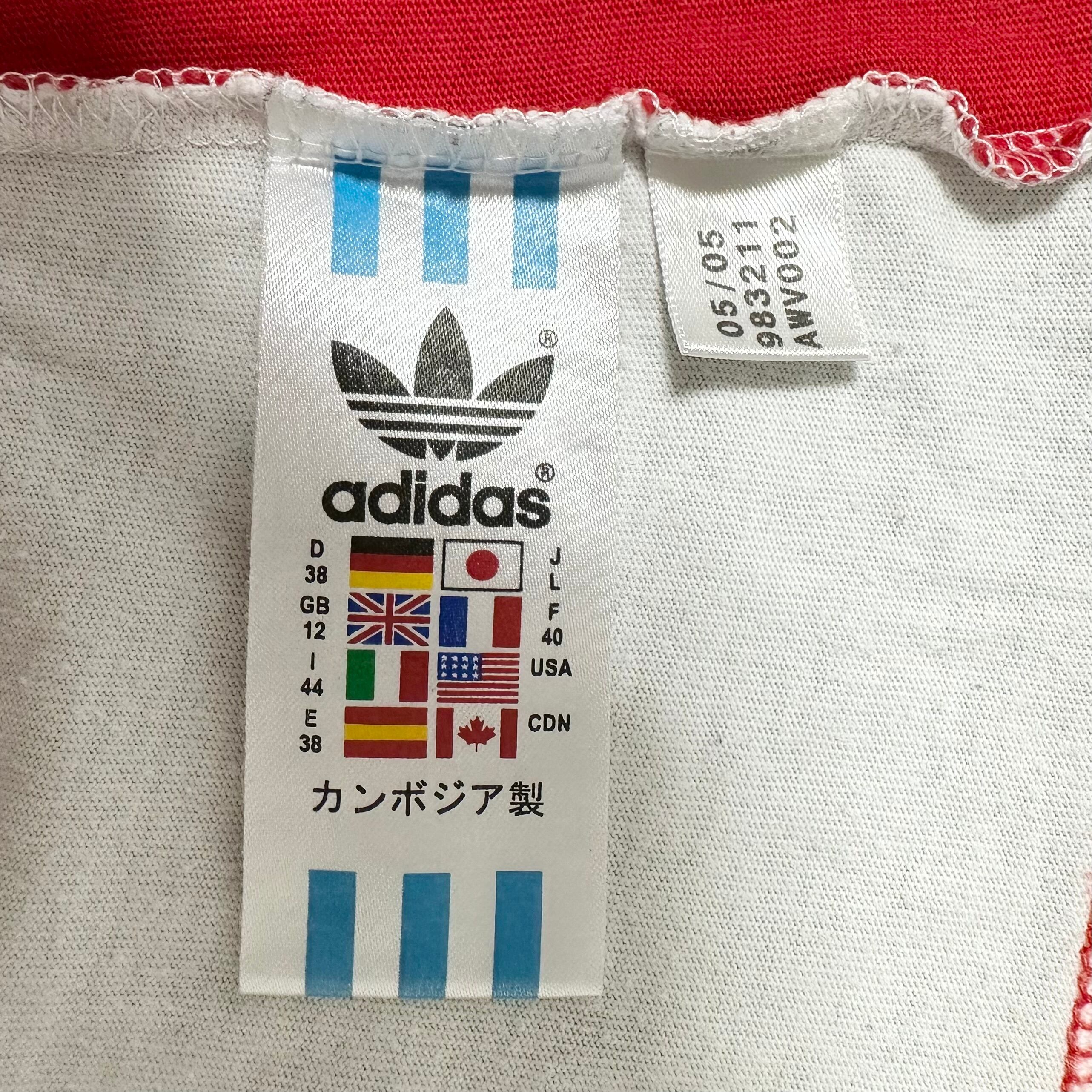 美品★00s★adidas/アディダス★万国旗タグ★Uネック★七分袖Tシャツ★レッド×ブルー×ホワイト/赤青白★L