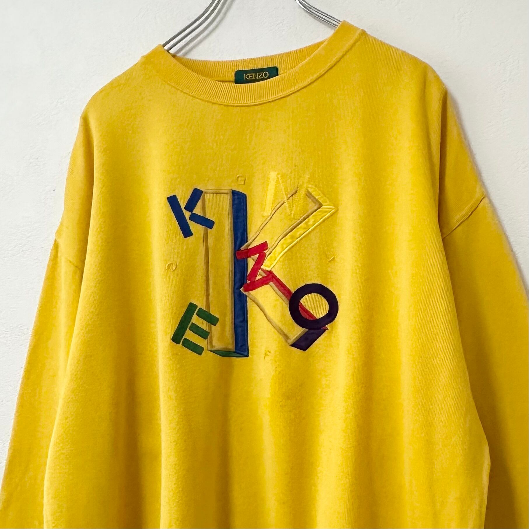 美品★90s★ヴィンテージ★KENZO/ケンゾー★薄手スウェット/トレーナー★太アーム★イエロー/黄青赤緑黒★クレイジー★XL
