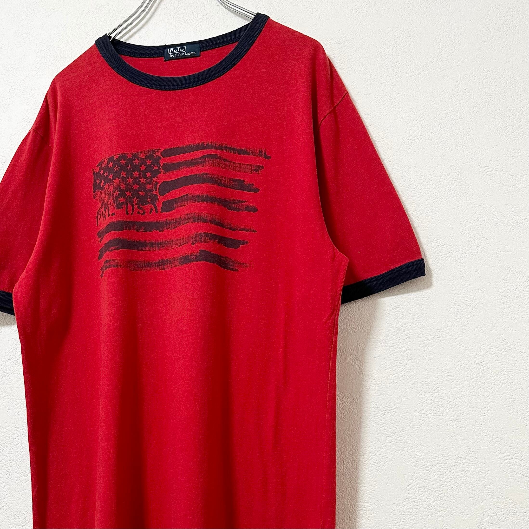 美品★Polo Ralph Lauren/ポロラルフローレン★リンガーTシャツ★星条旗★USA★レッド/赤紺★M相当