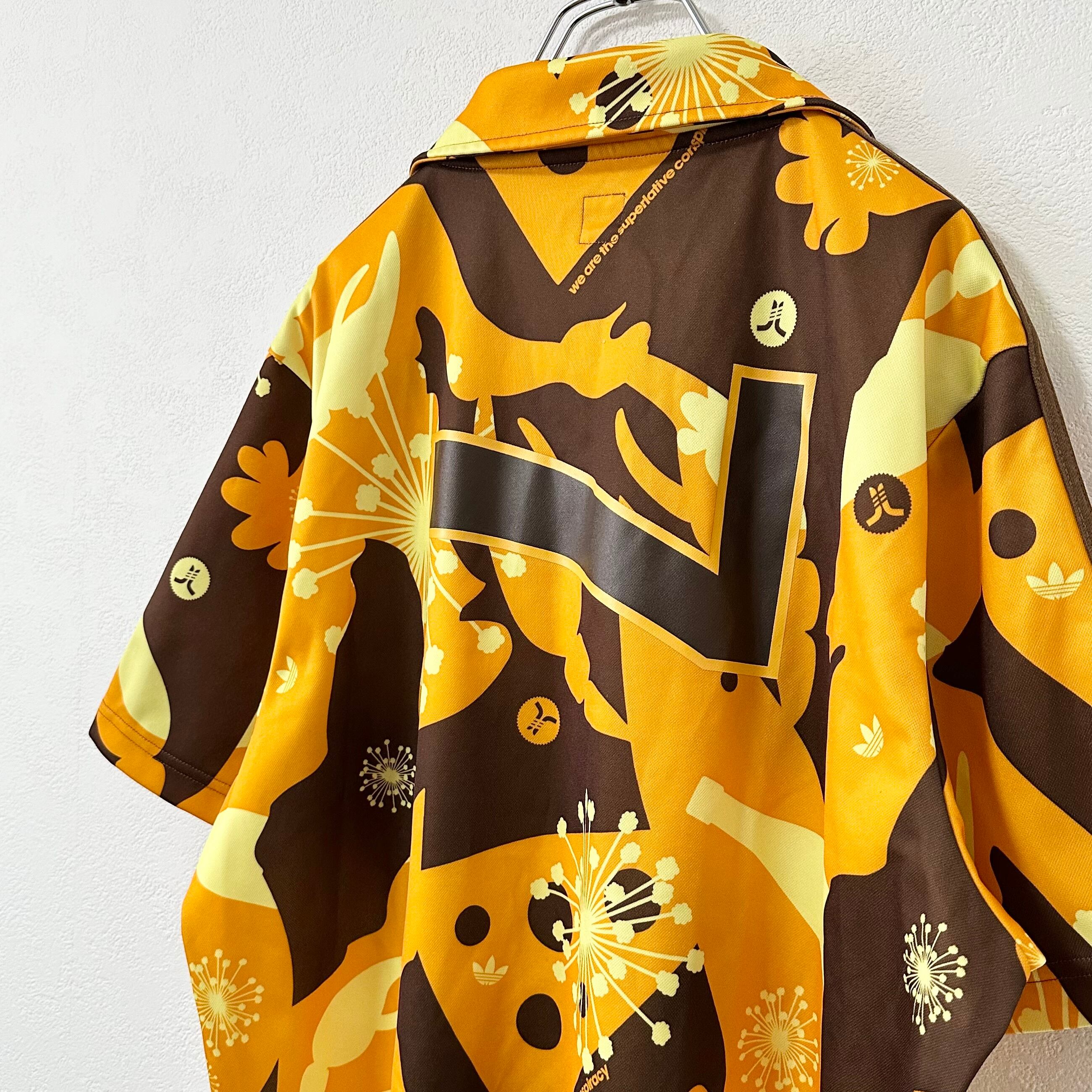 美品★00s★万国旗タグ★adidas/アディダス★ゲームシャツ★オレンジ★XL