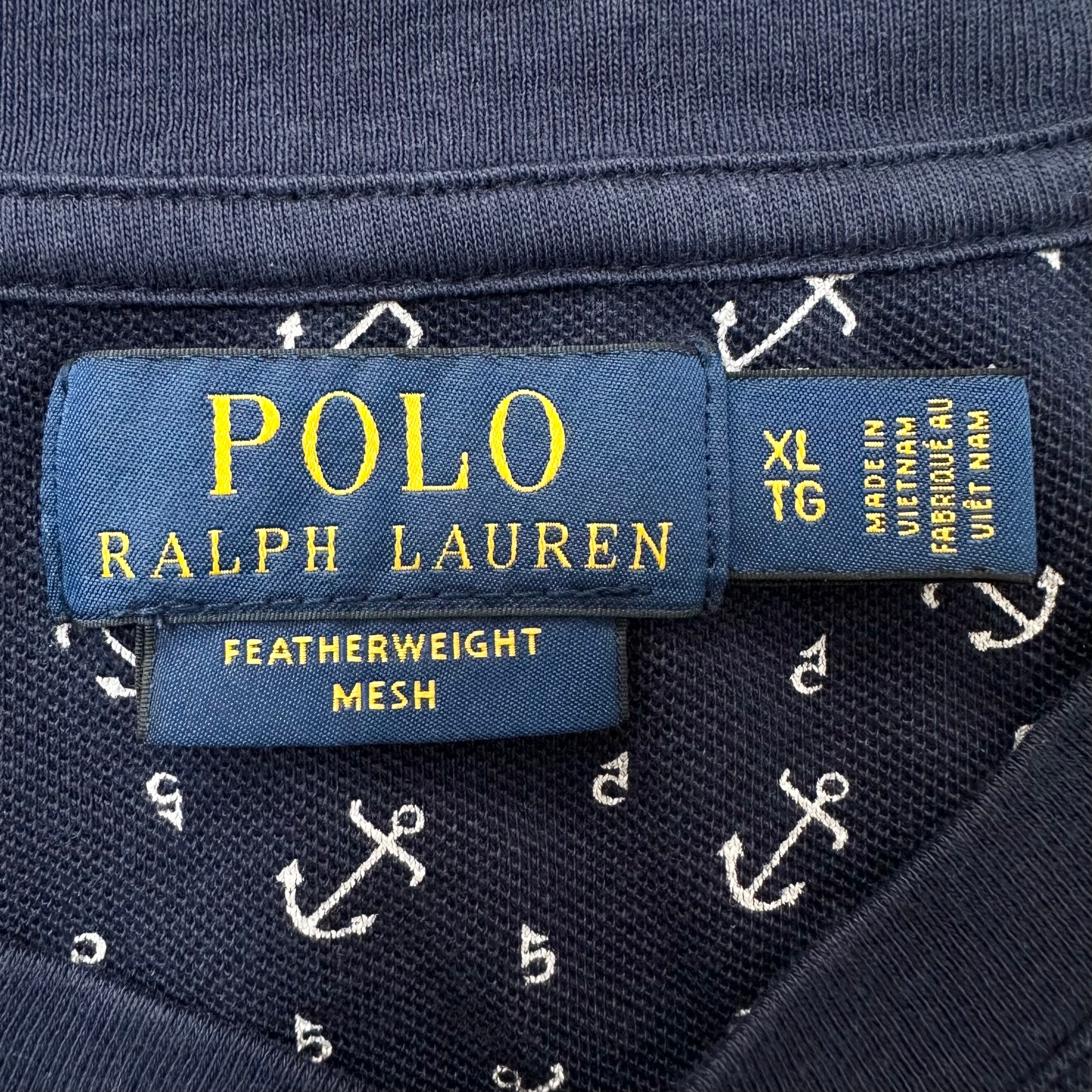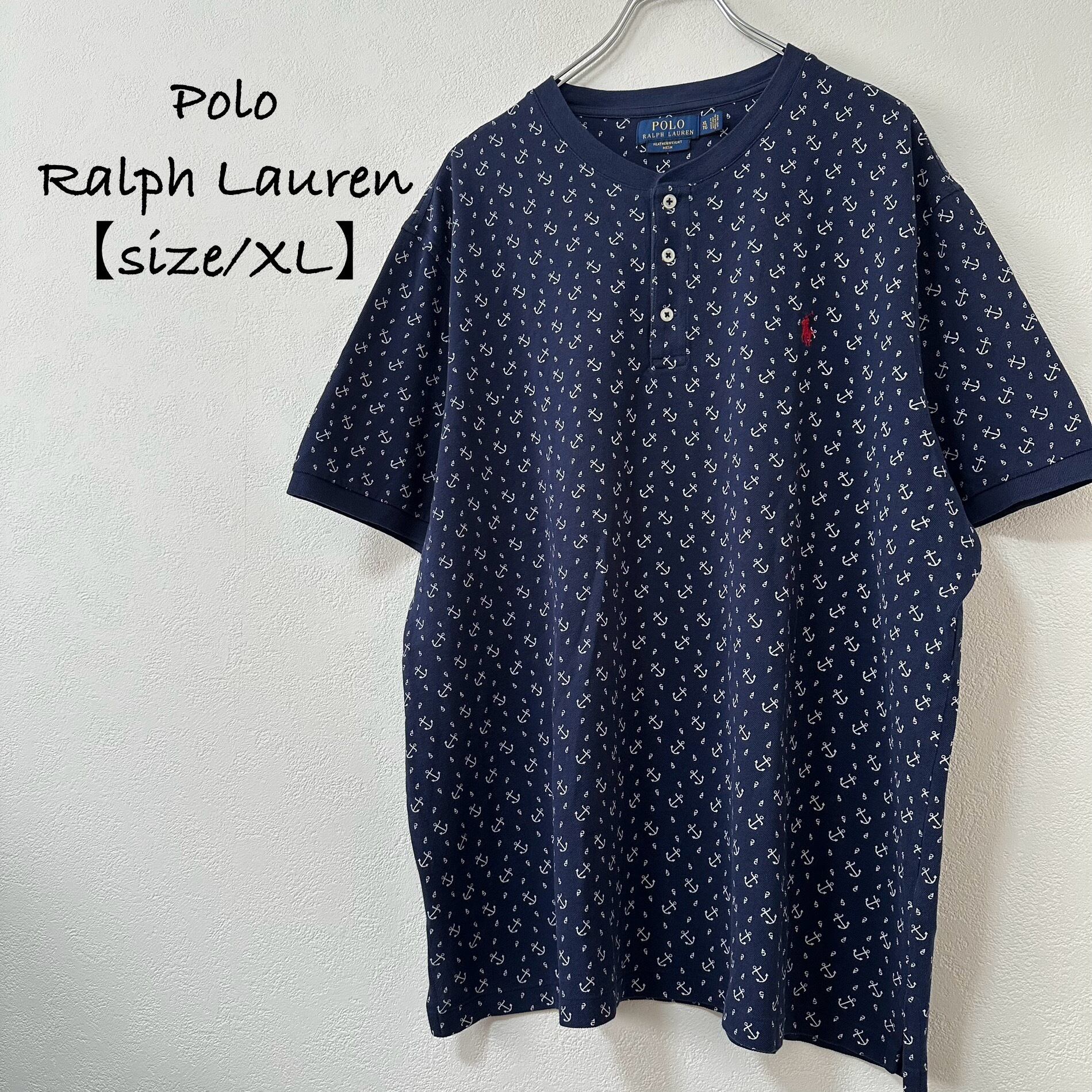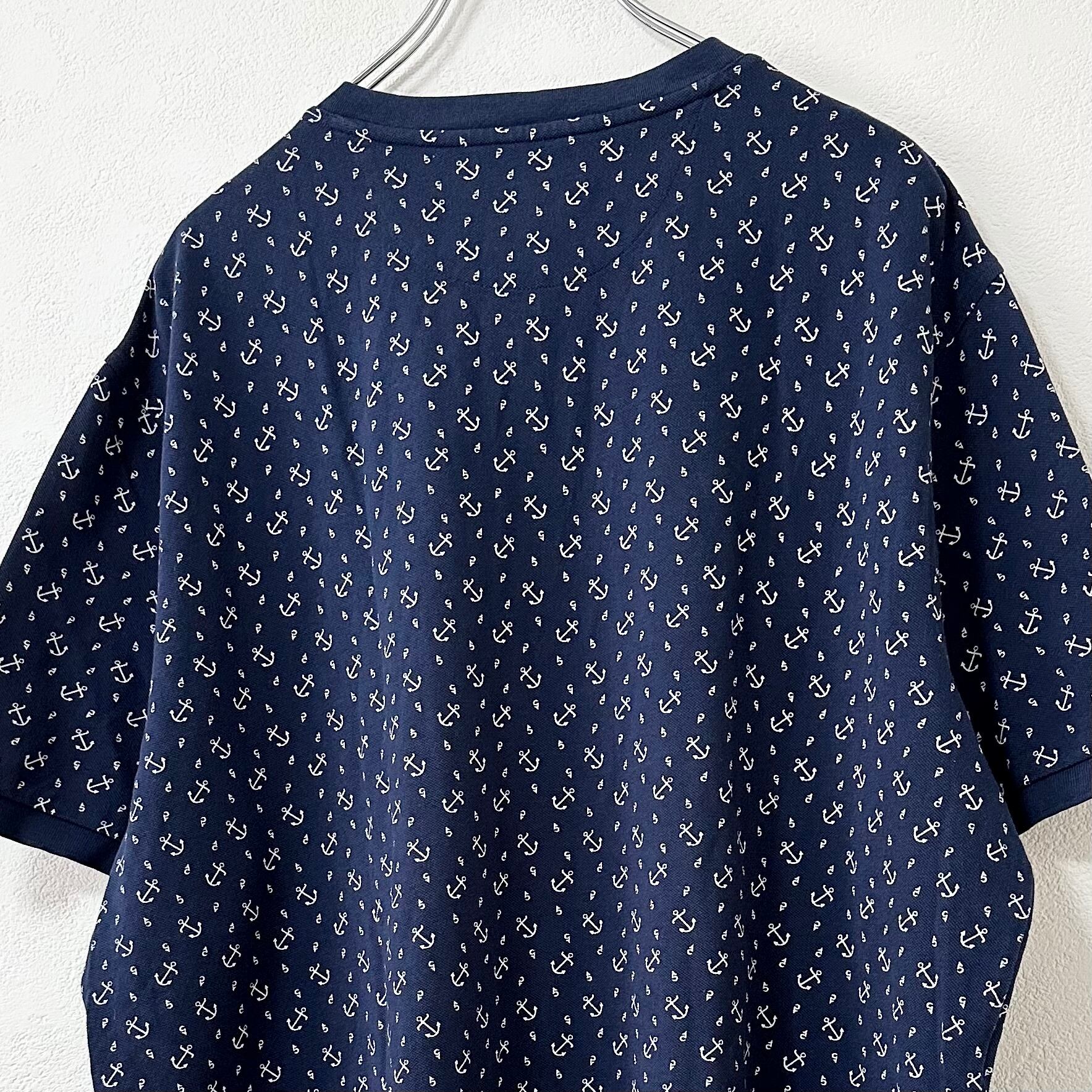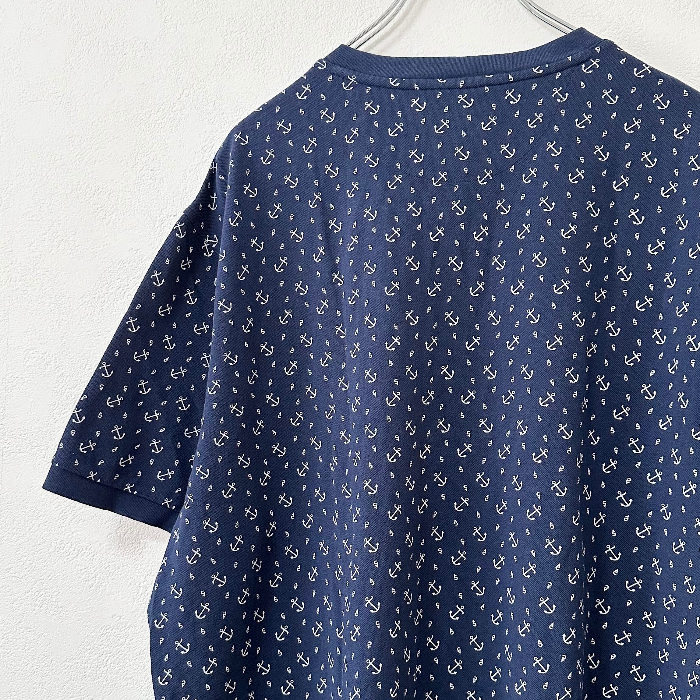 美品★Polo RalphLauren/ポロ ラルフローレン★ヘンリーネック★半袖Tシャツ★総柄★碇/アンカー★ネイビー/紺★XL