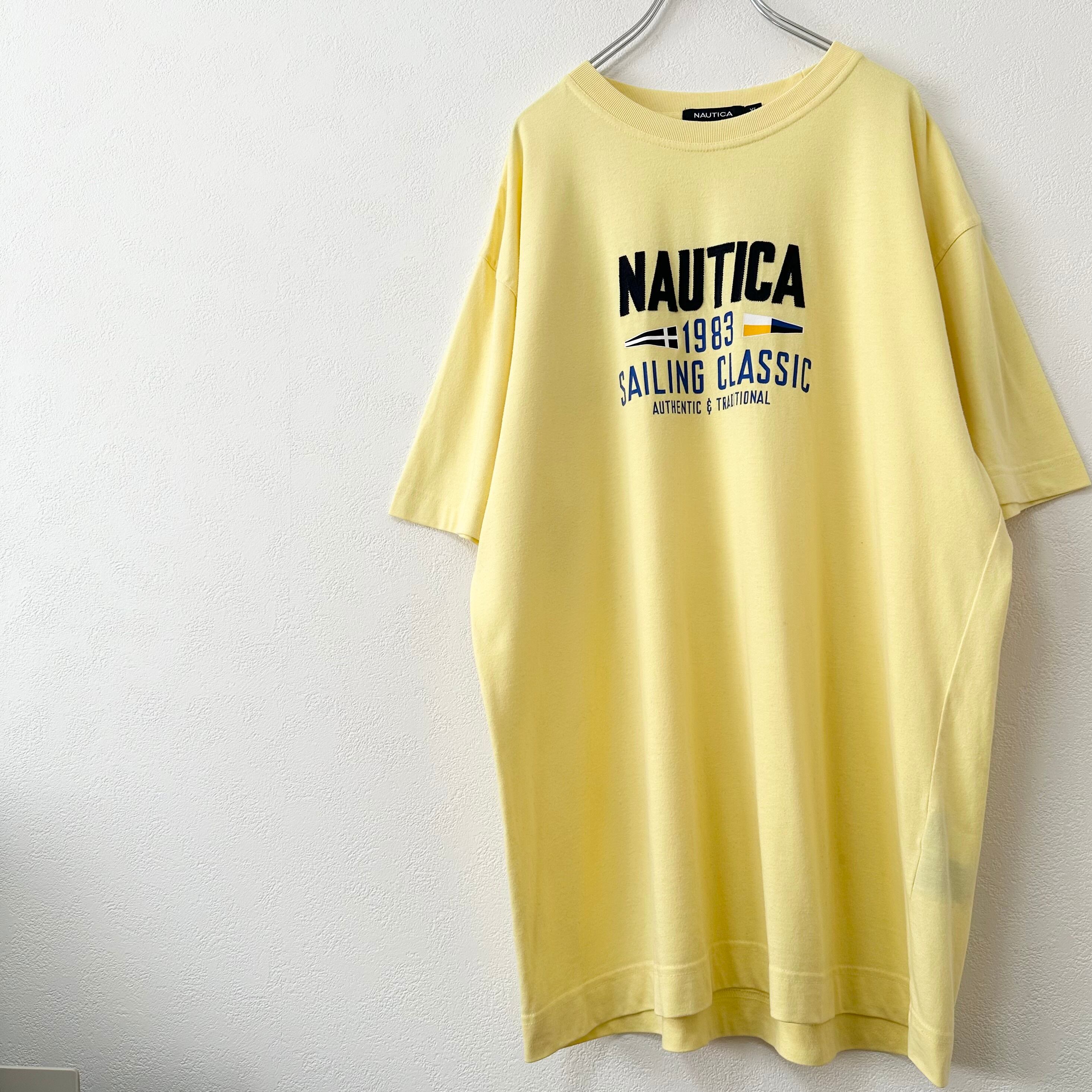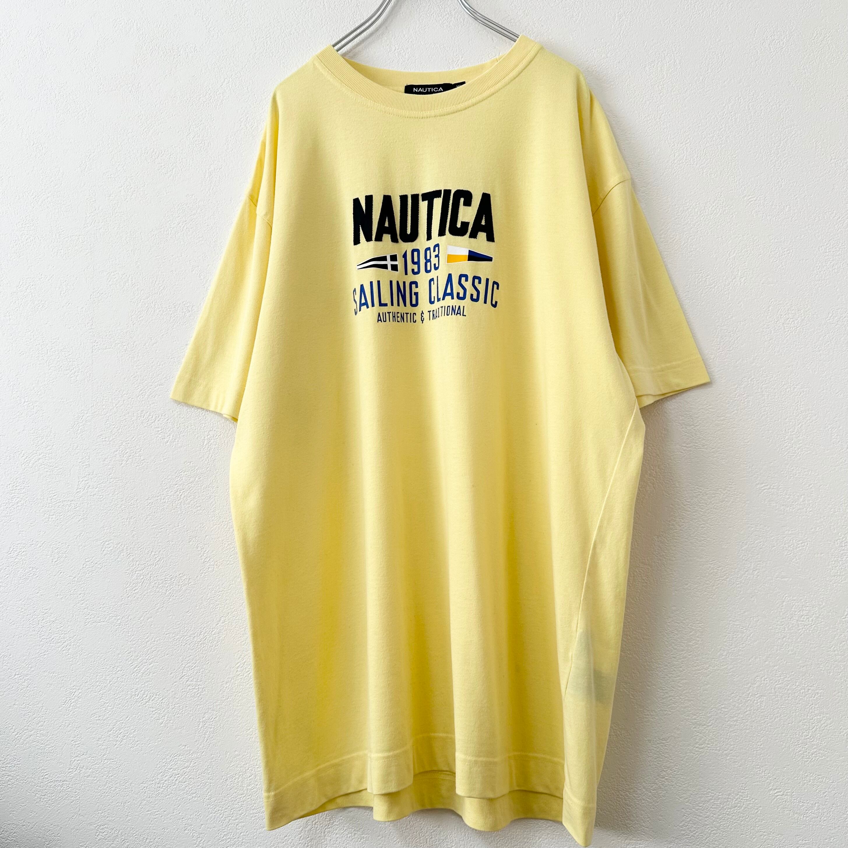 90s★nautica/ノーティカ★半袖Tシャツ★イエロー×ネイビー/黄紺★XL