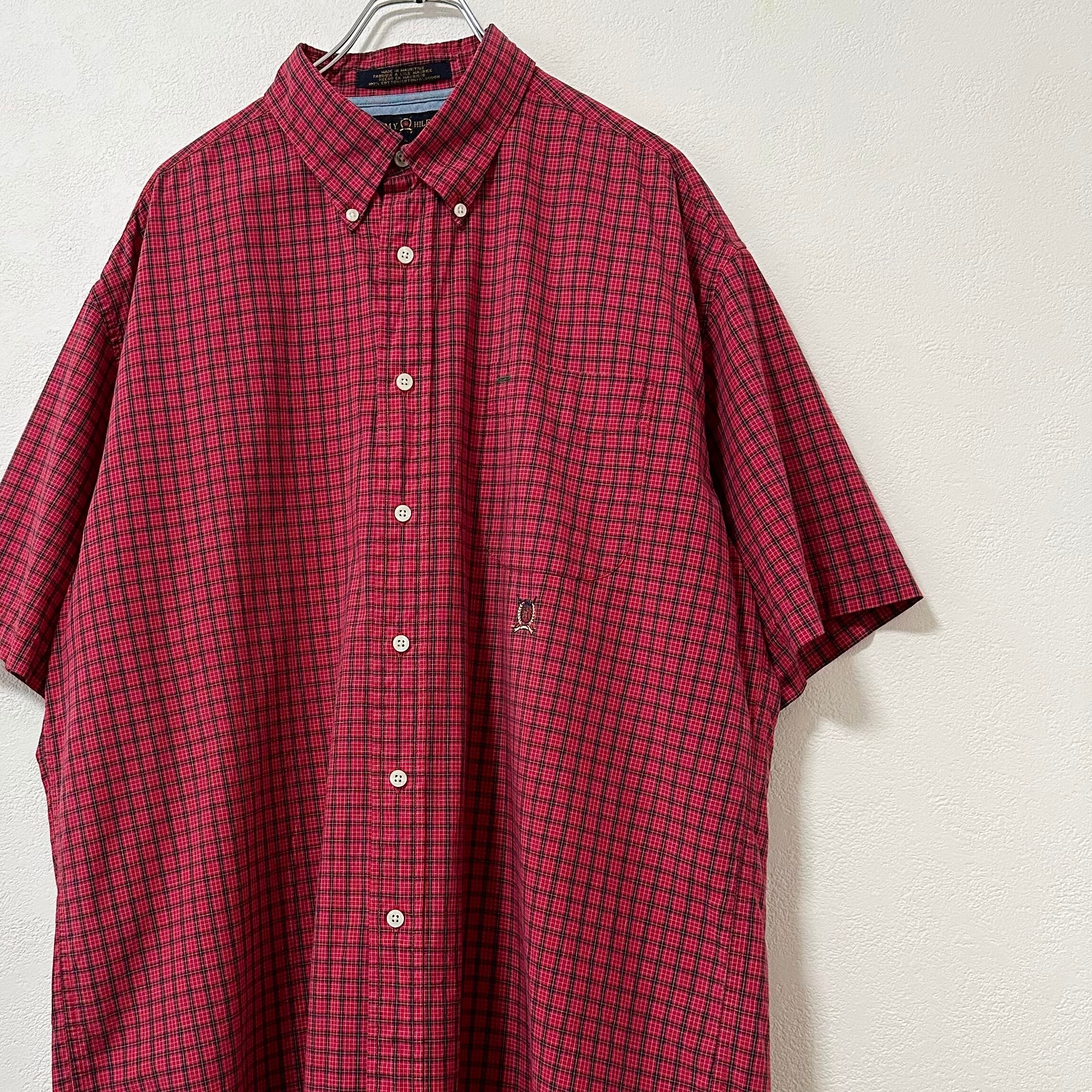 00s★TommyHilfiger/トミーヒルフィガー★半袖シャツ★チェック★オールドロゴ★レッド/赤★XL