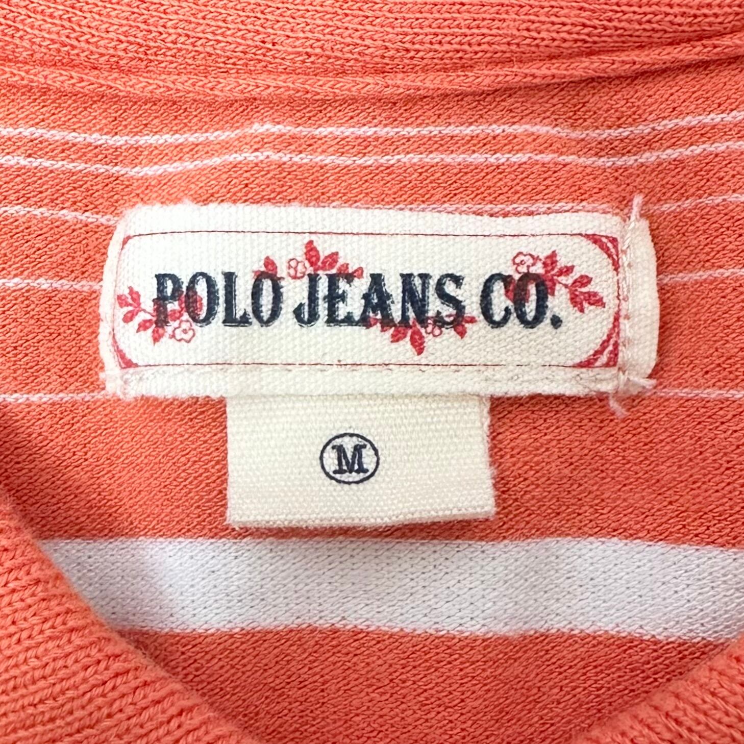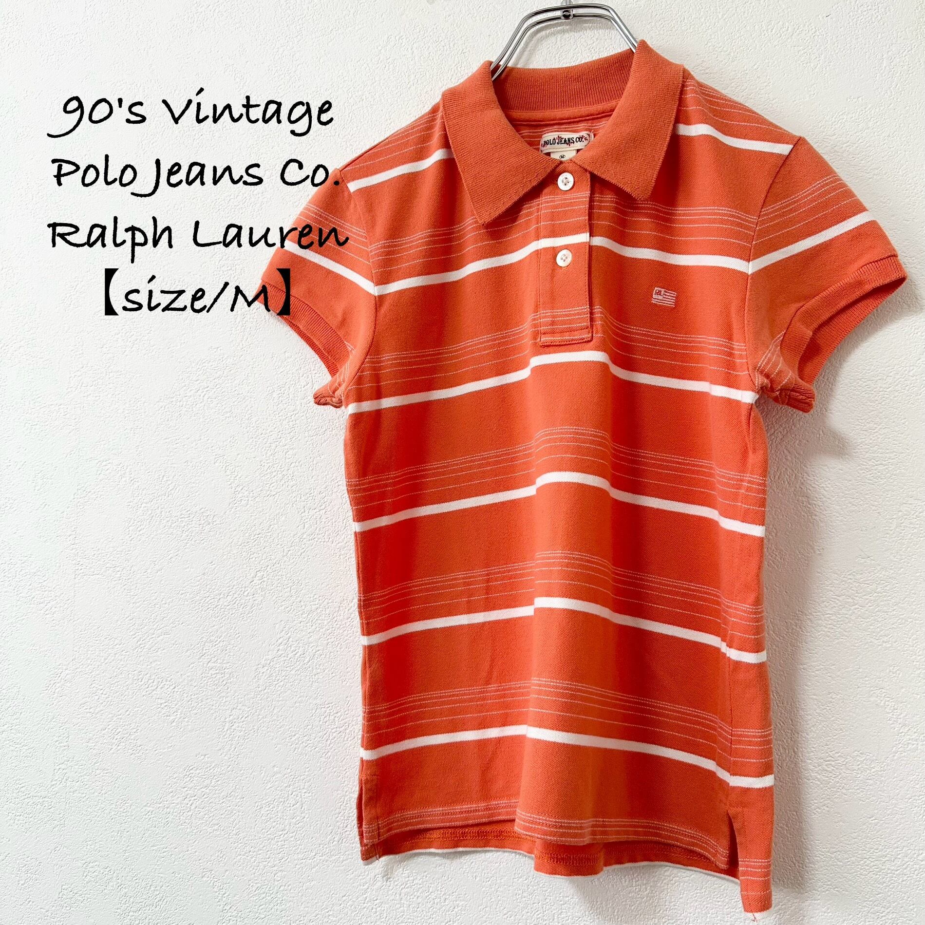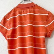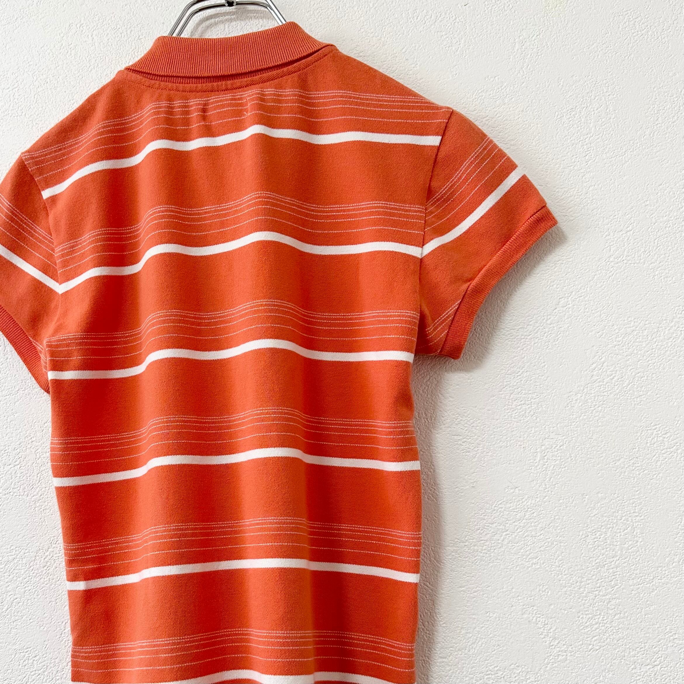 美品★90s★POLO RALPH LAUREN★ポロ ラルフローレン★半袖ボーダーポロシャツ★オレンジ・サーモンピンク系×白★M