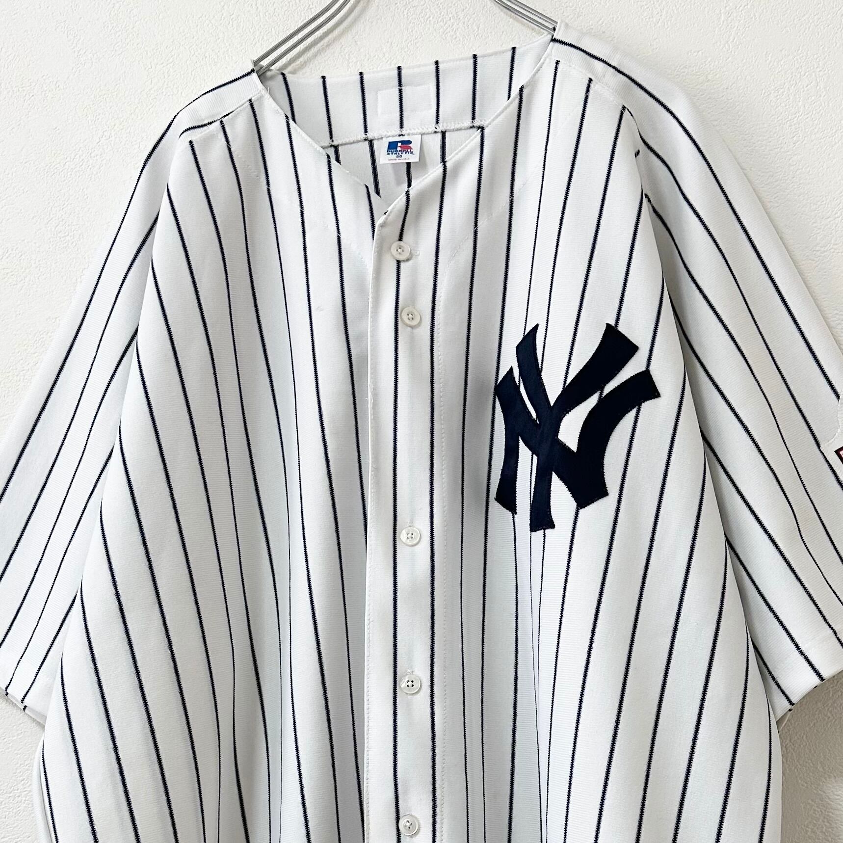 美品★USA製★Russell/ラッセル★NY Yankees/ヤンキース★ゲームシャツ/ユニフォーム★白紺★2XL〜3XL相当