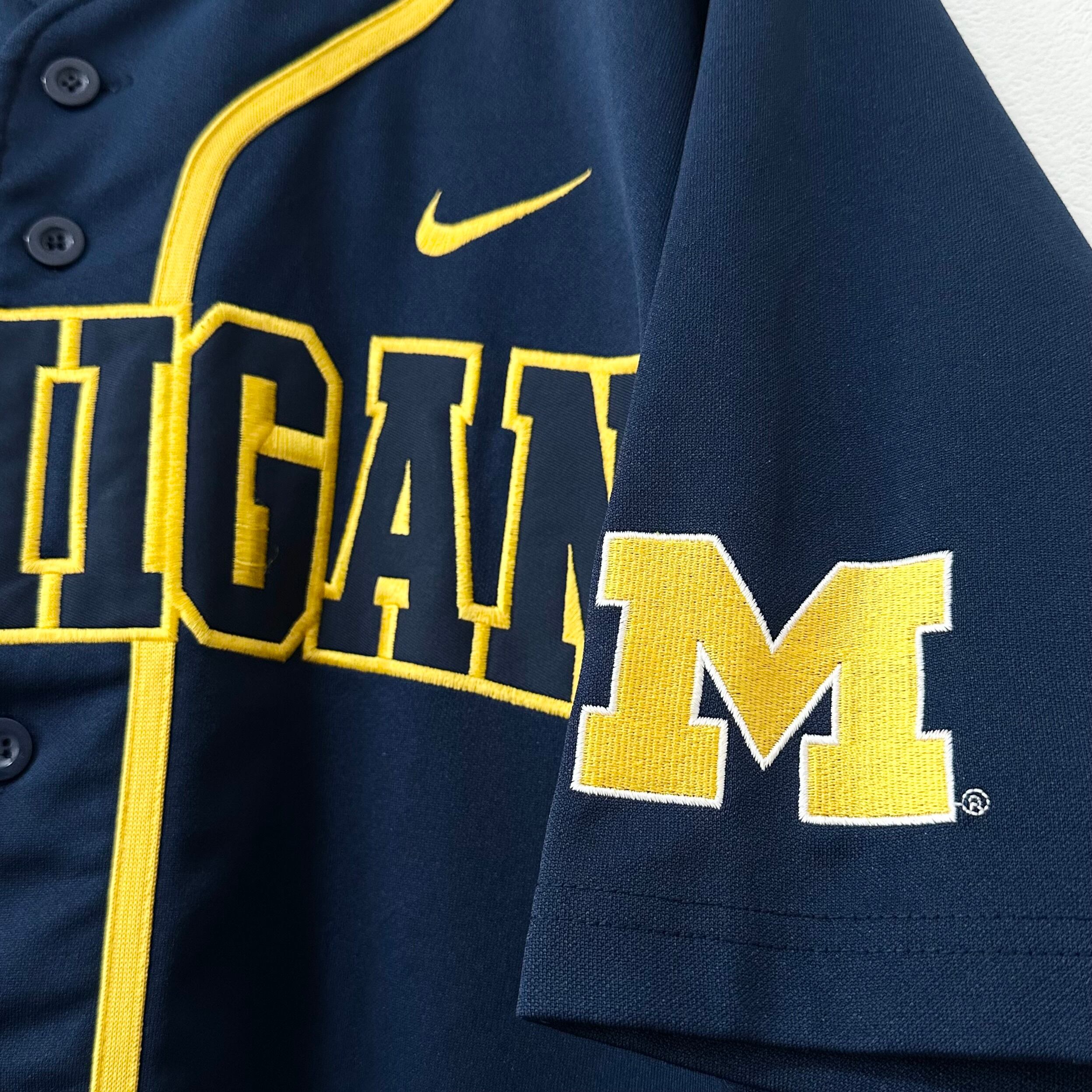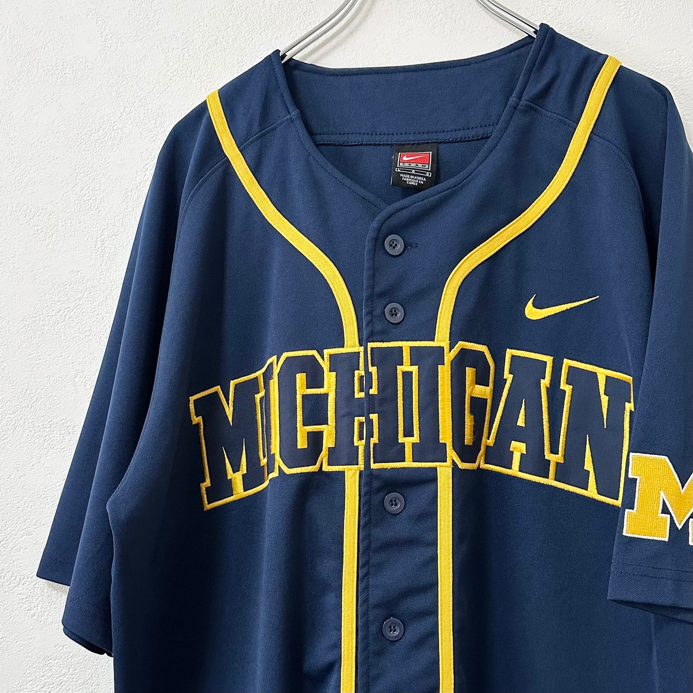 美品★ヴィンテージ★NIKE/ナイキ★MICHIGAN/ミシガン★ベースボールシャツ★ネイビー×イエロー/紺×黄★L表記 XL相当
