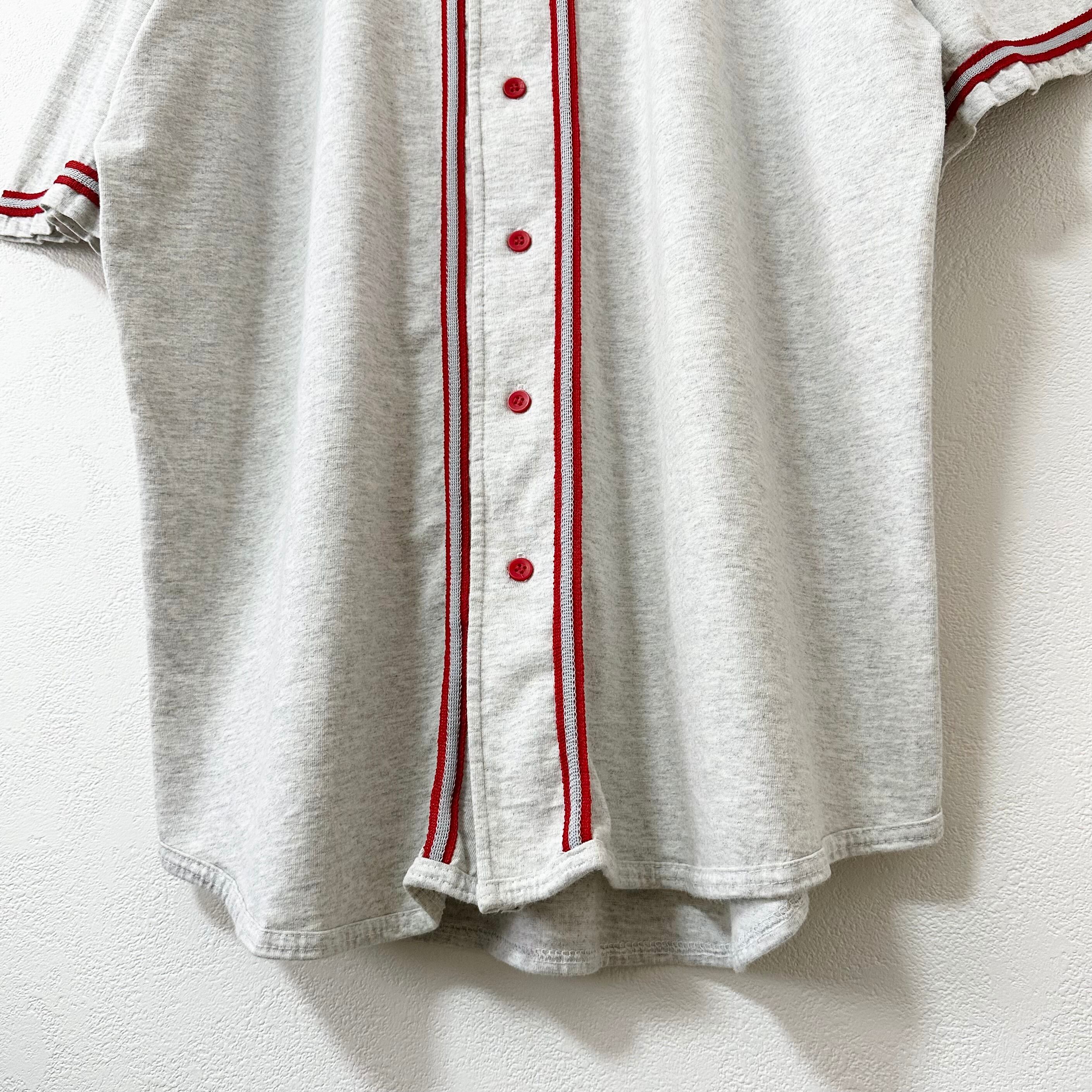 80s90s★USA製★ヴィンテージ★BadgerSport/バジャースポーツ★ベースボールシャツ★霜降りグレー×レッド/赤★XL