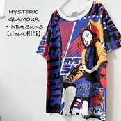HystericGlamour/ヒステリックグラマー×NBA SUNS/サンズ★コラボ★総柄Tシャツ★紫×オレンジ★フリー/L相当