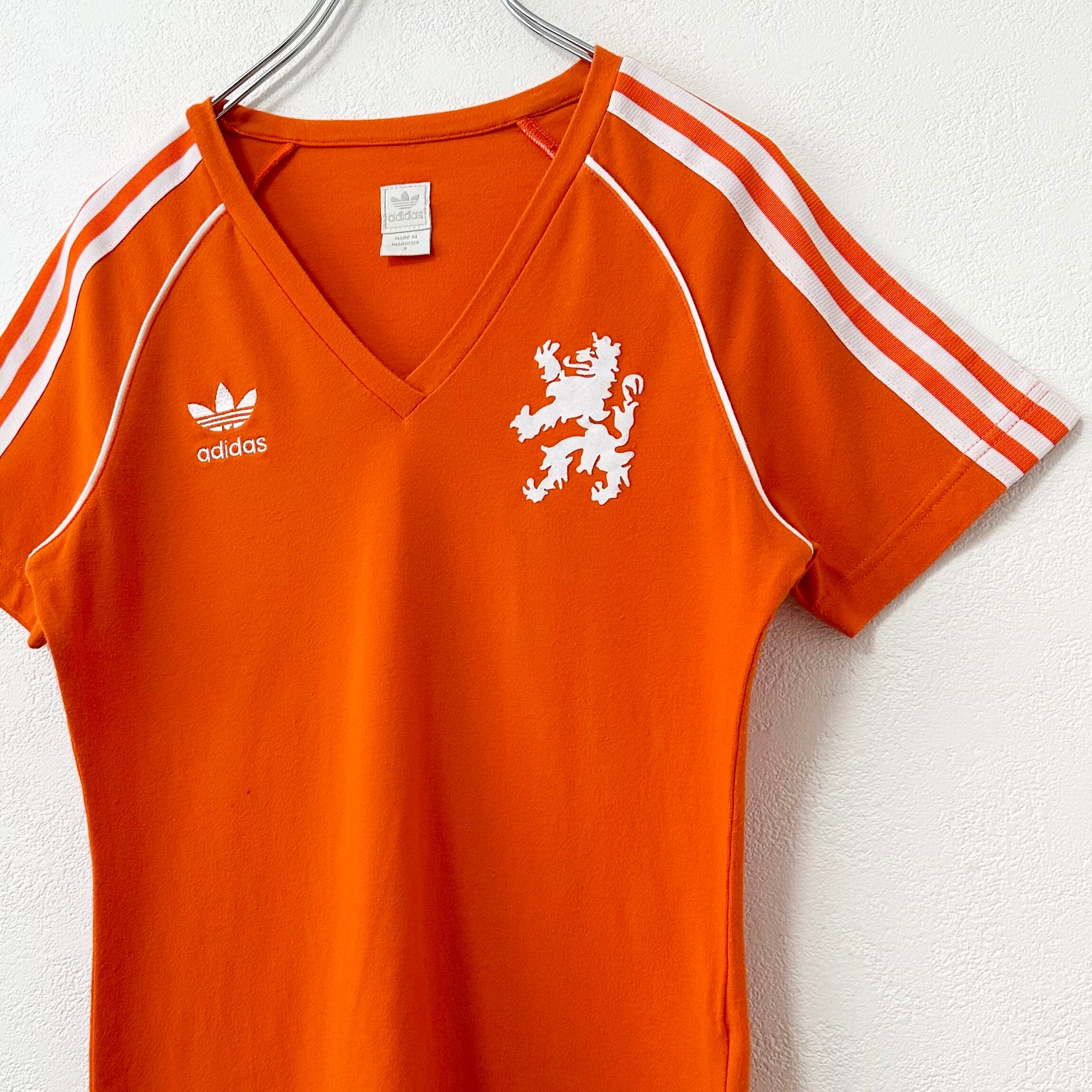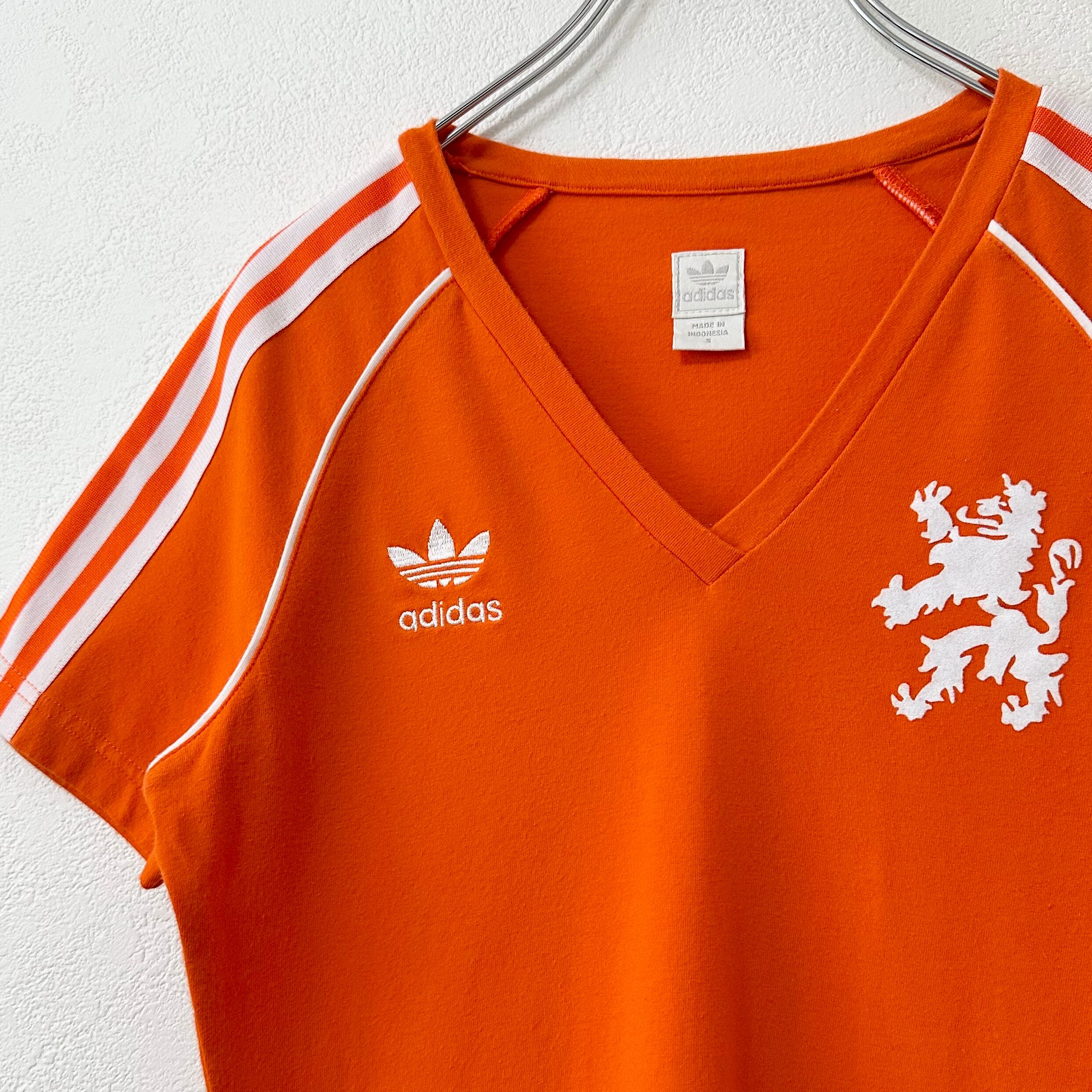 美品★00s★adidas/アディダス★VネックラグランTシャツ★FIFA/2006ワールドカップ/オランダ★オレンジ★M