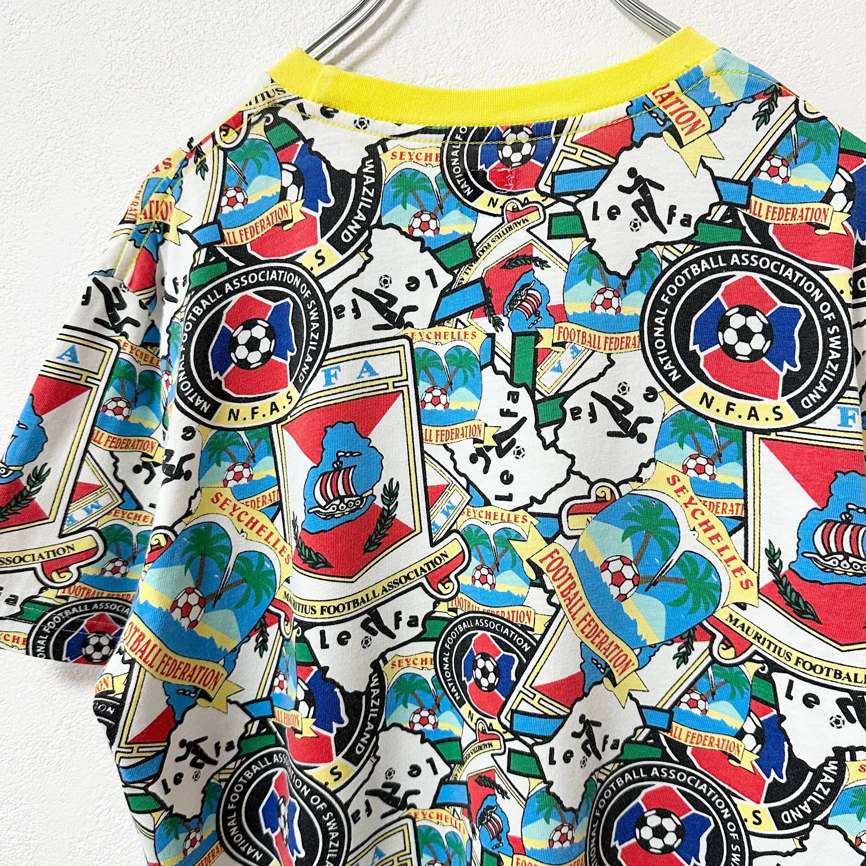 極レア★00s★adidas/アディダス★総柄リンガーTシャツ★イエロー/黄×ホワイト/白★スワジランド★エスワティニ★M
