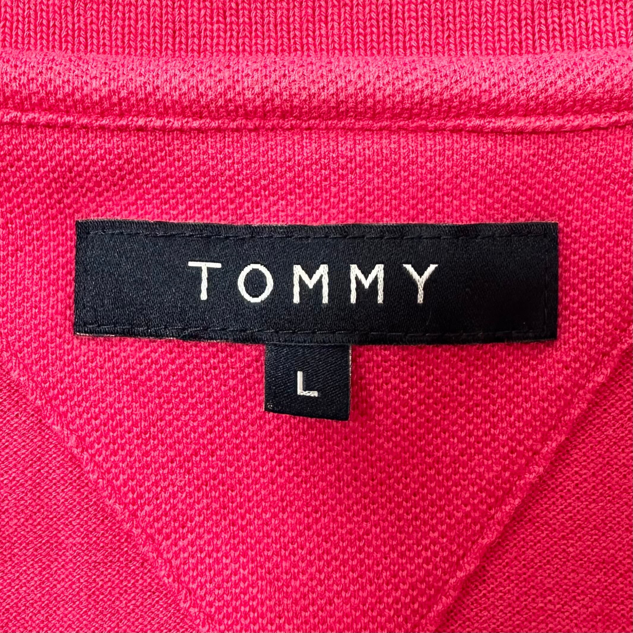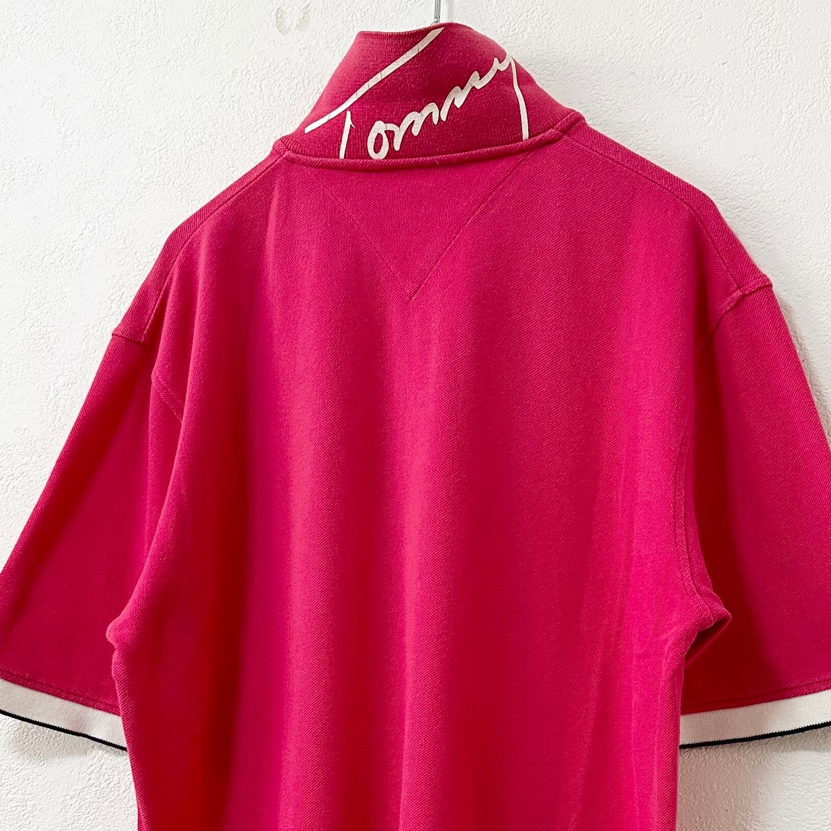 美品★Tommy Hilfiger/トミーヒルフィガー★ポロシャツ★ビッグ×襟裏ロゴ★ピンク×ホワイト/白★L