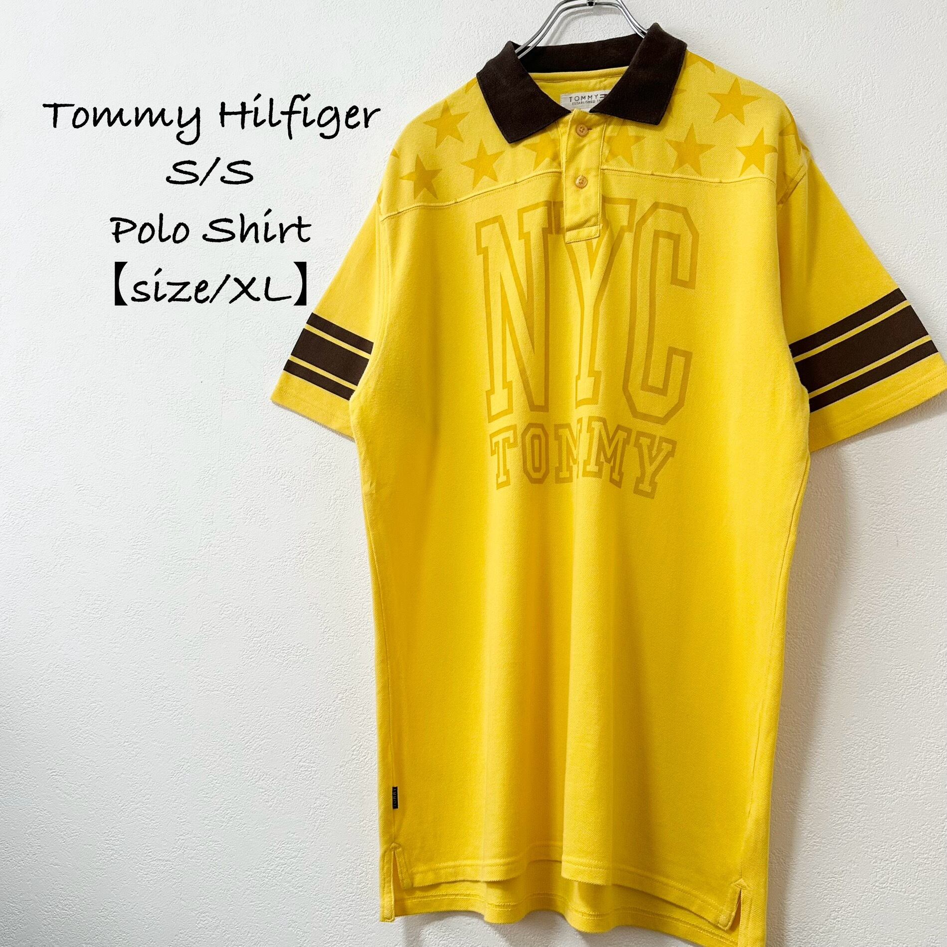 Tommy Hilfiger/トミーヒルフィガー★半袖ポロシャツ★星柄★イエロー×ブラウン/黄×茶★XL