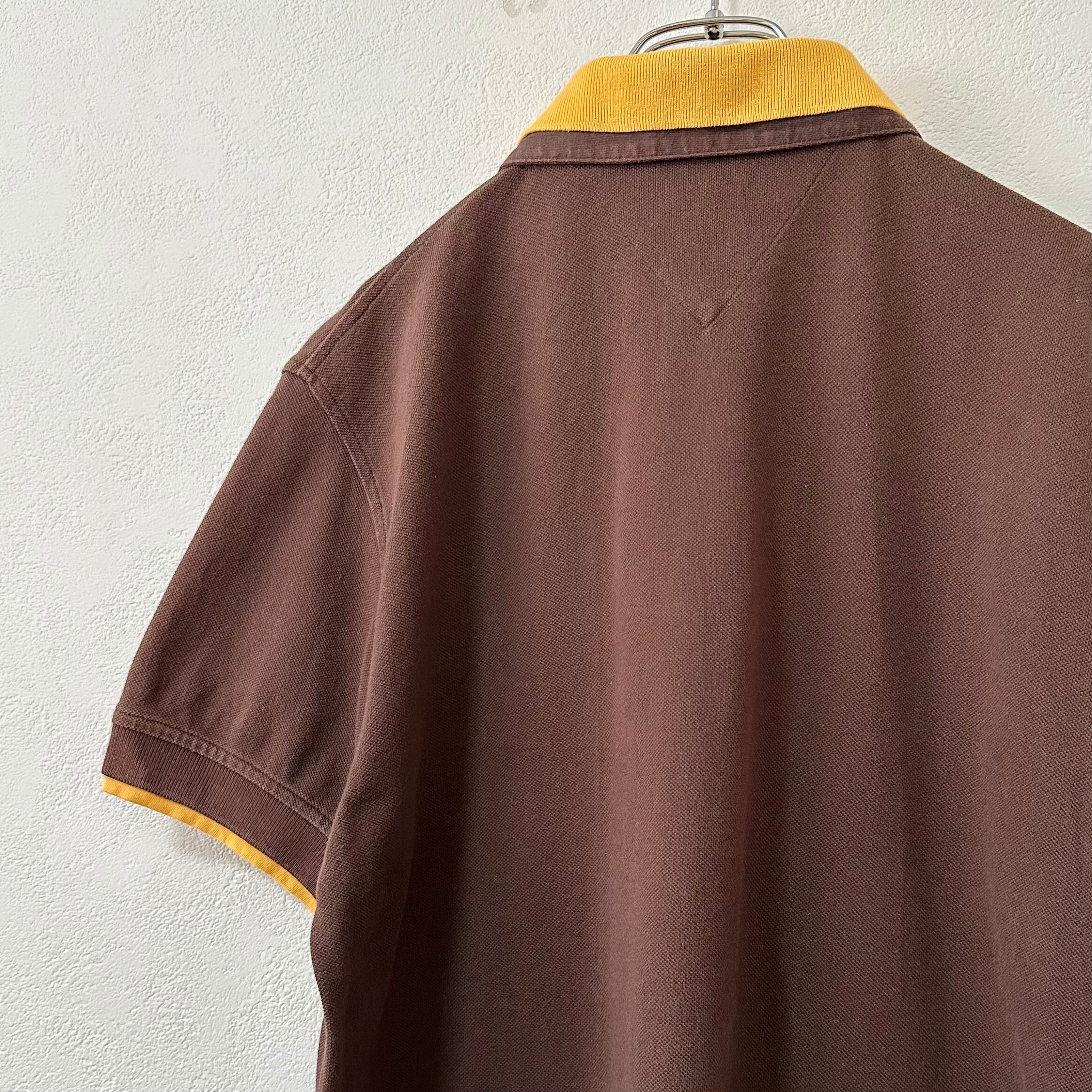 美品★00s★Tommy Hilfiger/トミーヒルフィガー★ポロシャツ★重ね着★W襟★ブラウン×イエロー/茶×黄★S〜M相当