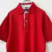 美品★00s★Tommy Hilfiger/トミーヒルフィガー★ポロシャツ★レッド/赤★S〜M相当