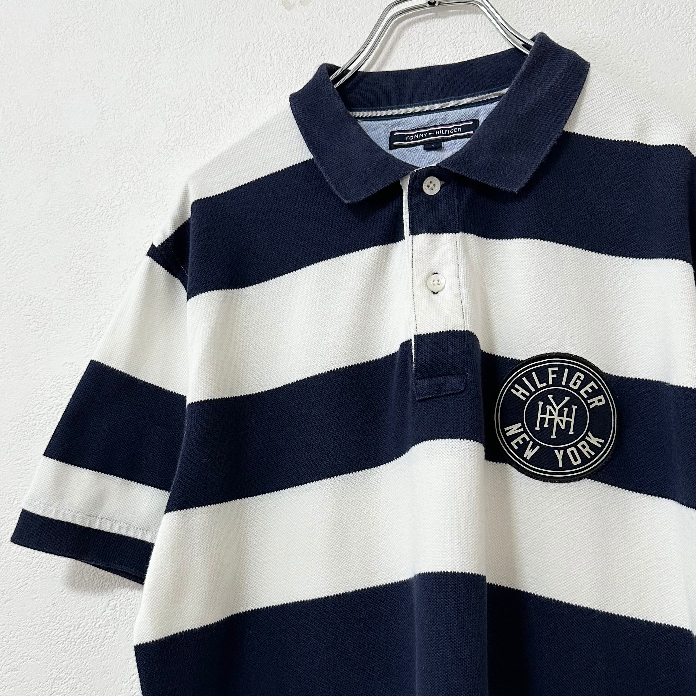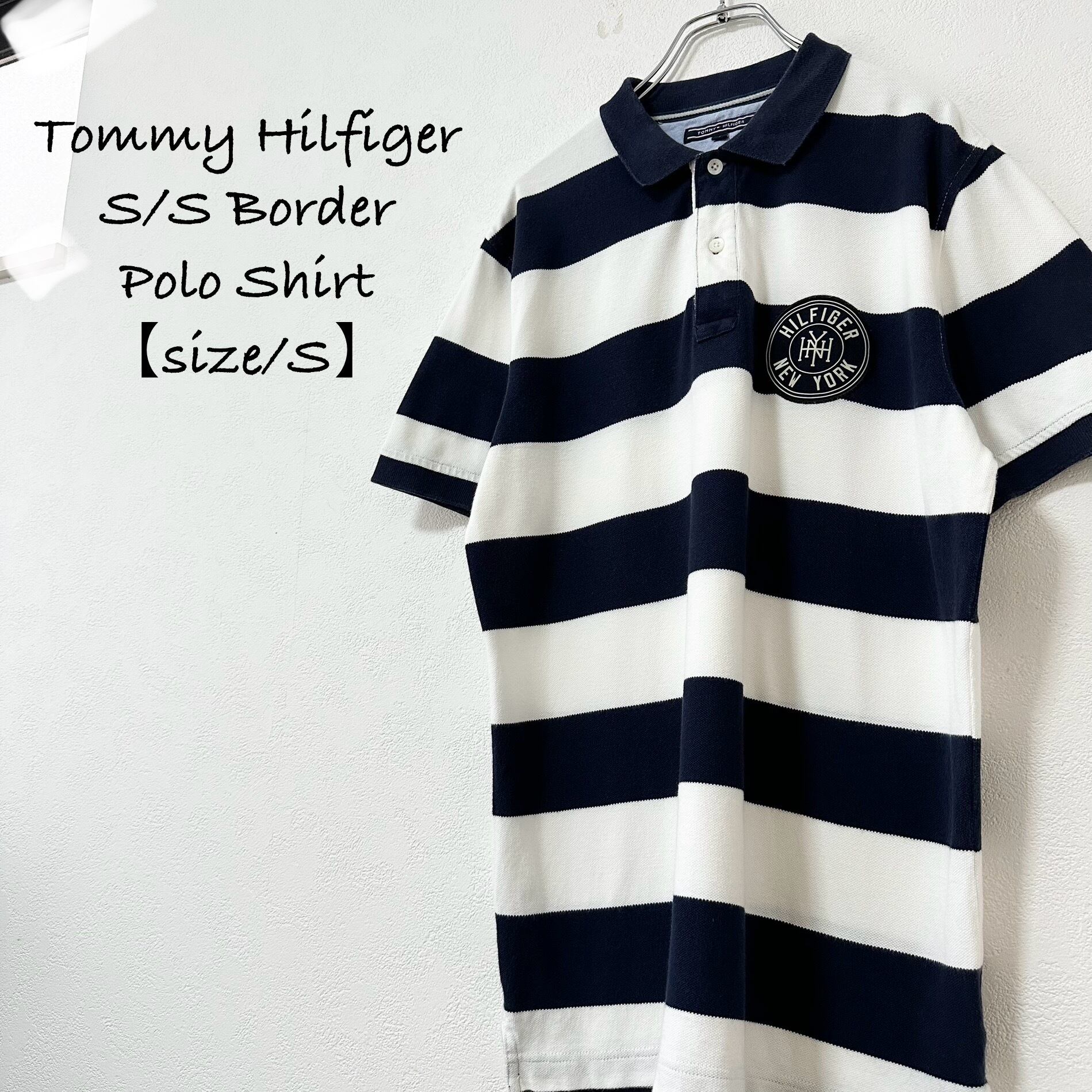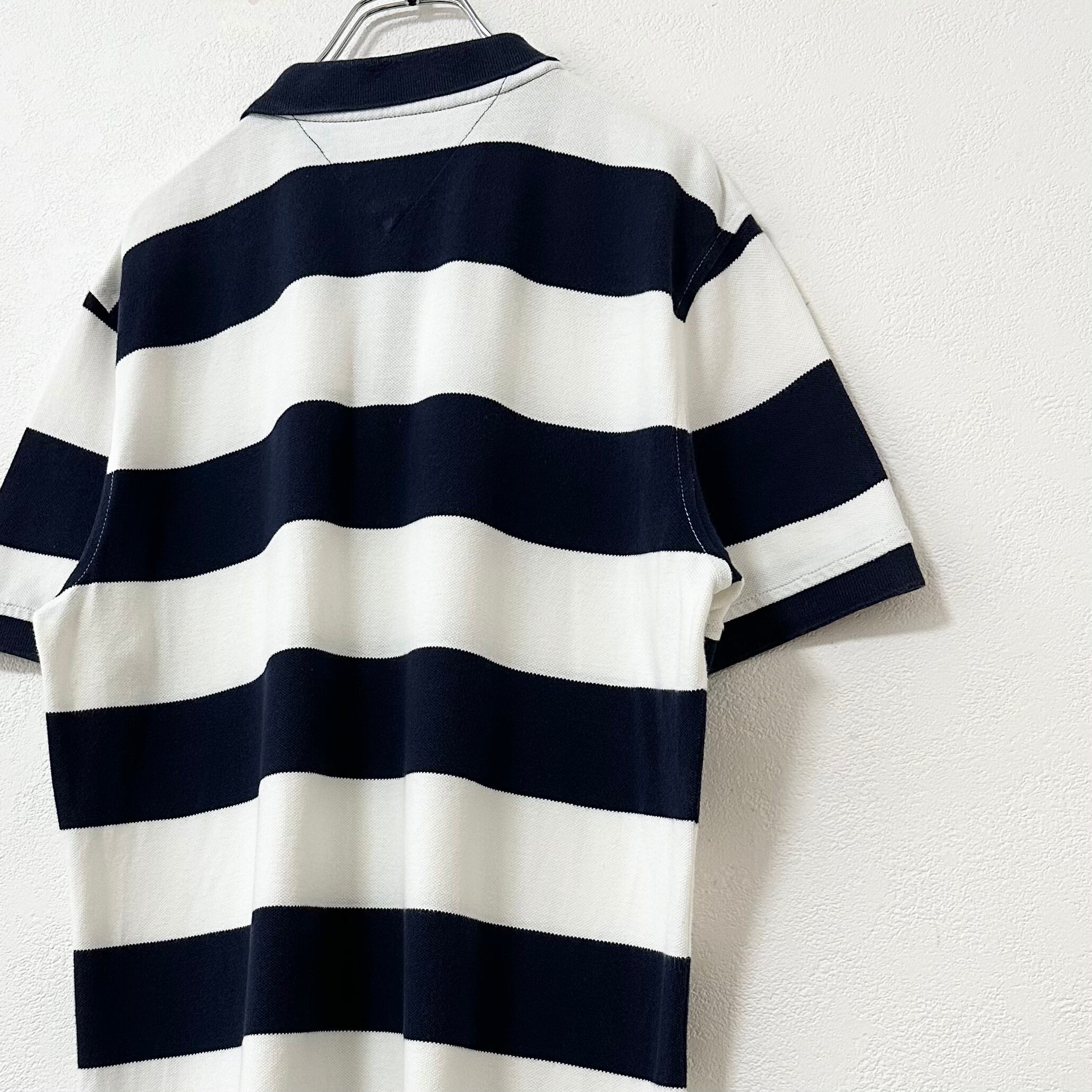 TommyHilfiger/トミーヒルフィガー★半袖ポロシャツ★太ボーダー★ネイビー×ホワイト/紺白★S