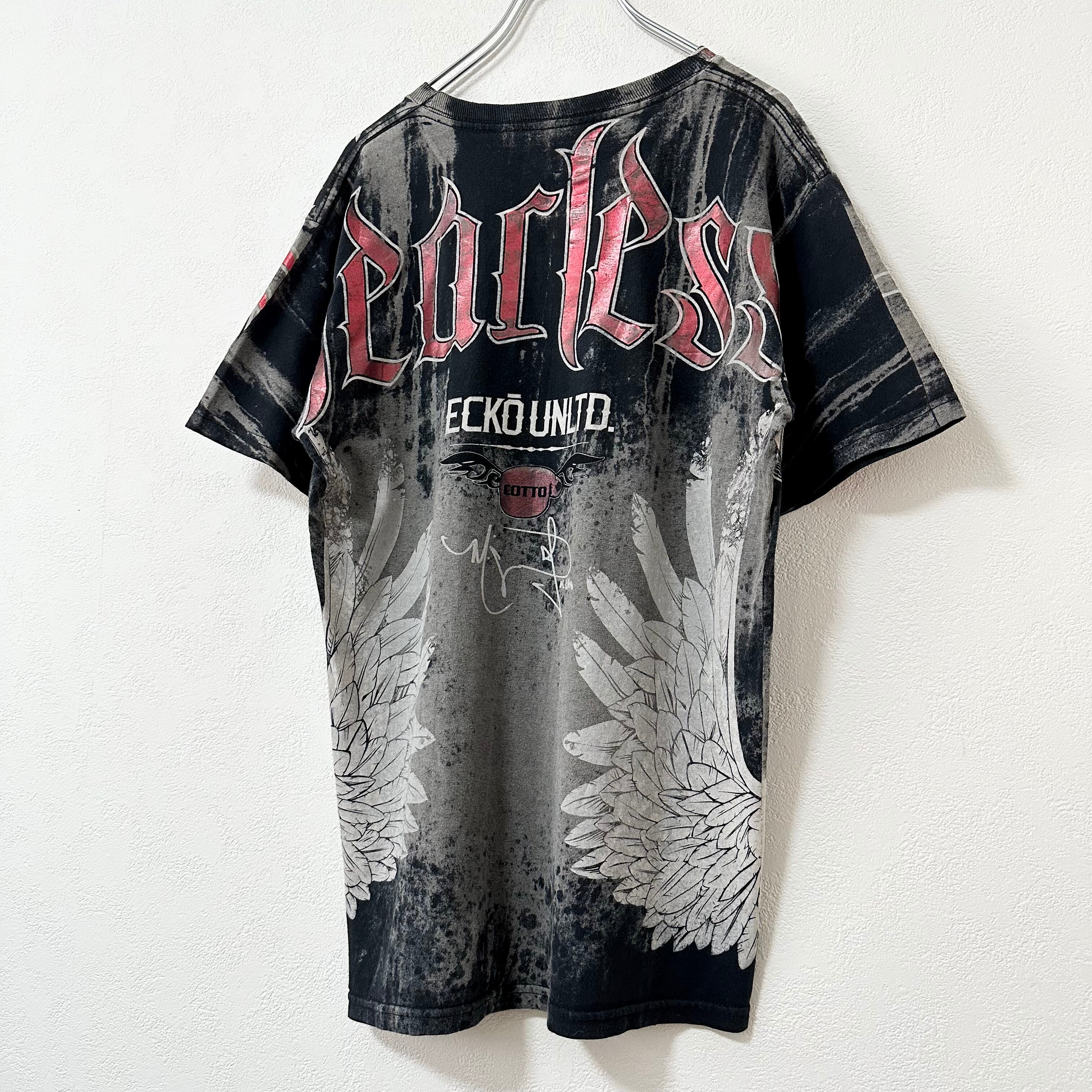 90s〜00s★ECKO UNLTD/エコー アンリミテッド★総柄★半袖Tシャツ★ブラック×レッド/黒赤★S表記/M〜相当