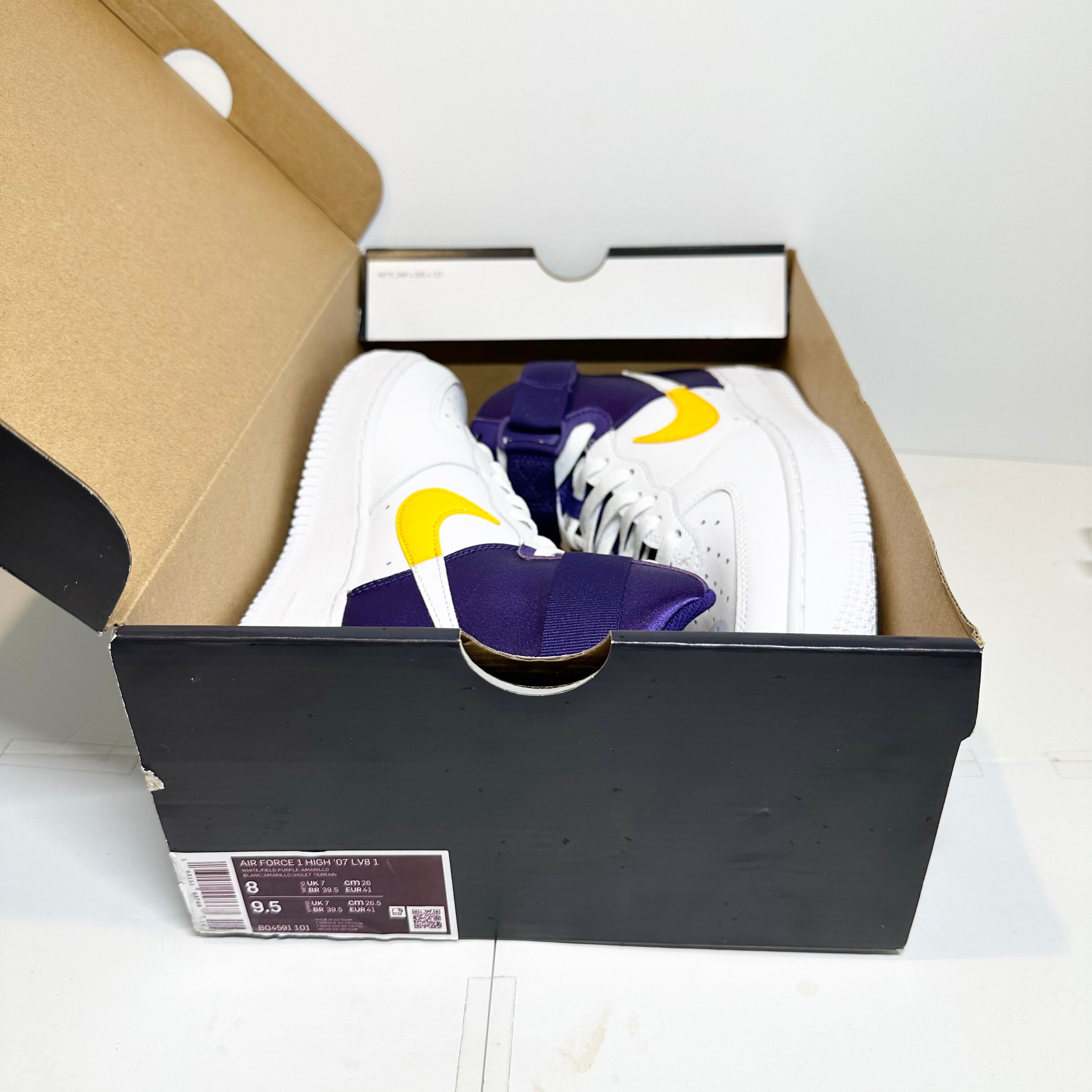 新品★箱付★NIKE/ナイキ★AirForce1/エアフォース1★NBA Lakers/レイカーズ★BQ4591-101★ホワイト×パープル×イエロー/白紫黄★26cm