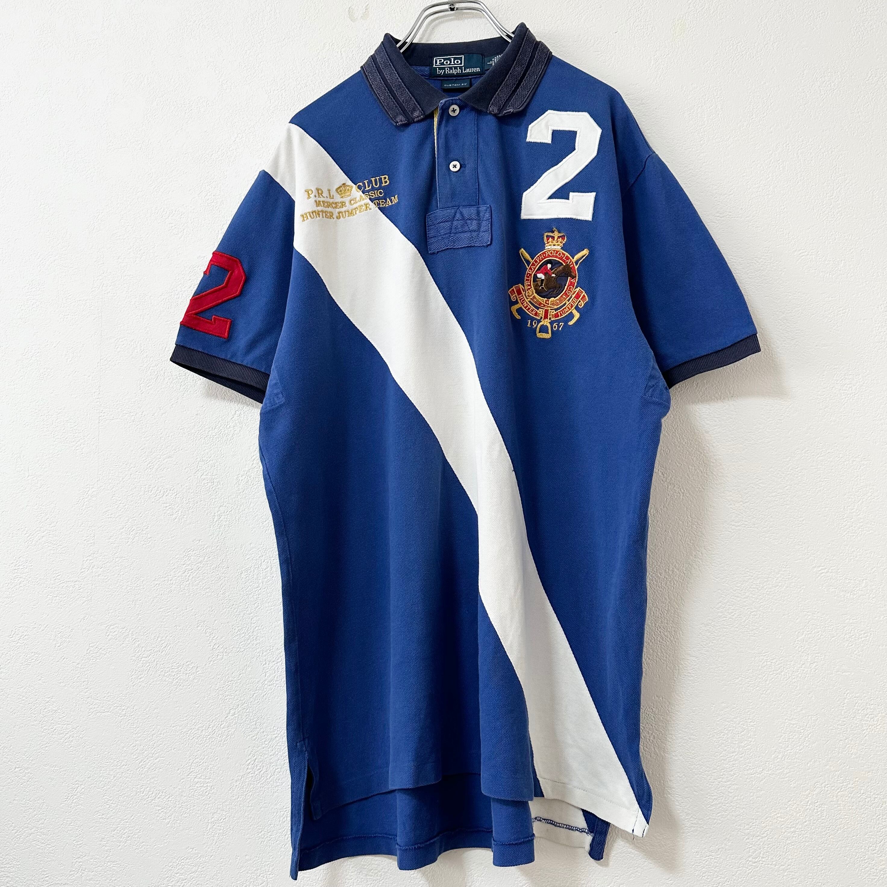 90s★ヴィンテージ★Polo RalphLauren/ポロ ラルフローレン★半袖ポロシャツ★ブルー×ネイビー/青紺白赤★L