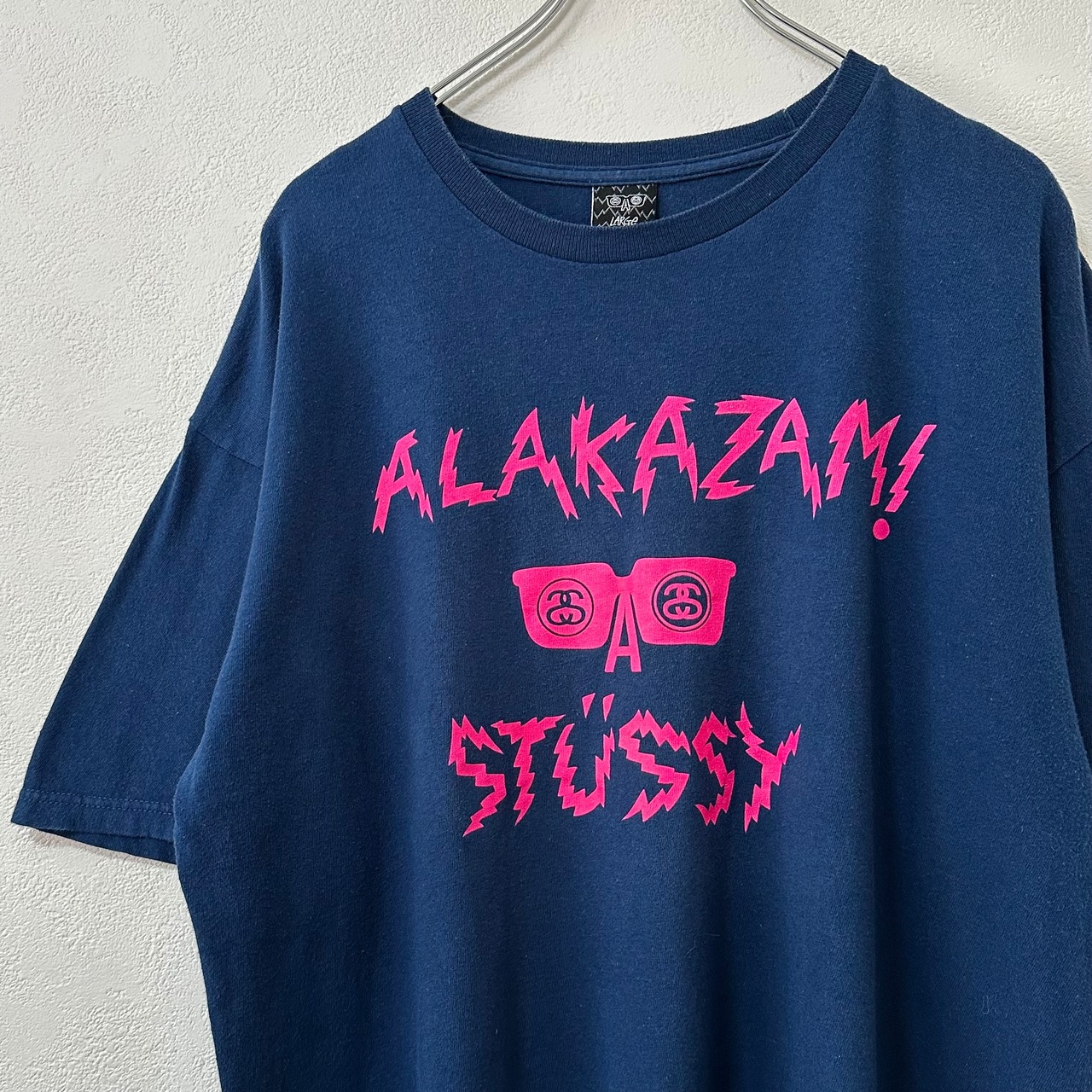STUSSY×ALAKAZAM★ステューシー×アラカザム★コラボ★半袖Tシャツ★ネイビー/紺×ピンク★L