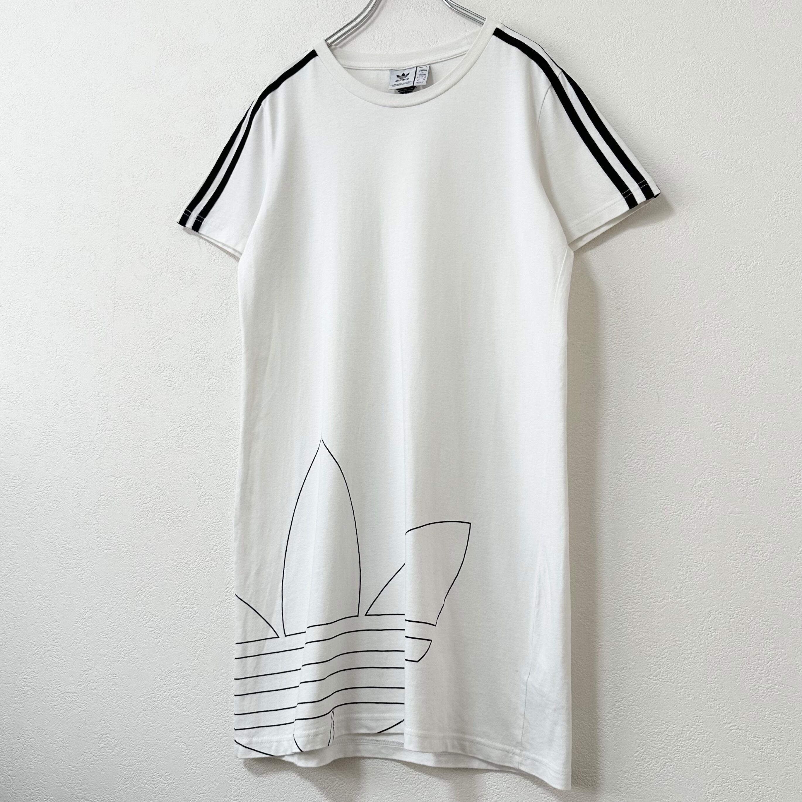 美品★adidas/アディダス★3ストライプ★ワンピース★Tee Dress/ティードレス★ホワイト×ブラック/白黒★XL