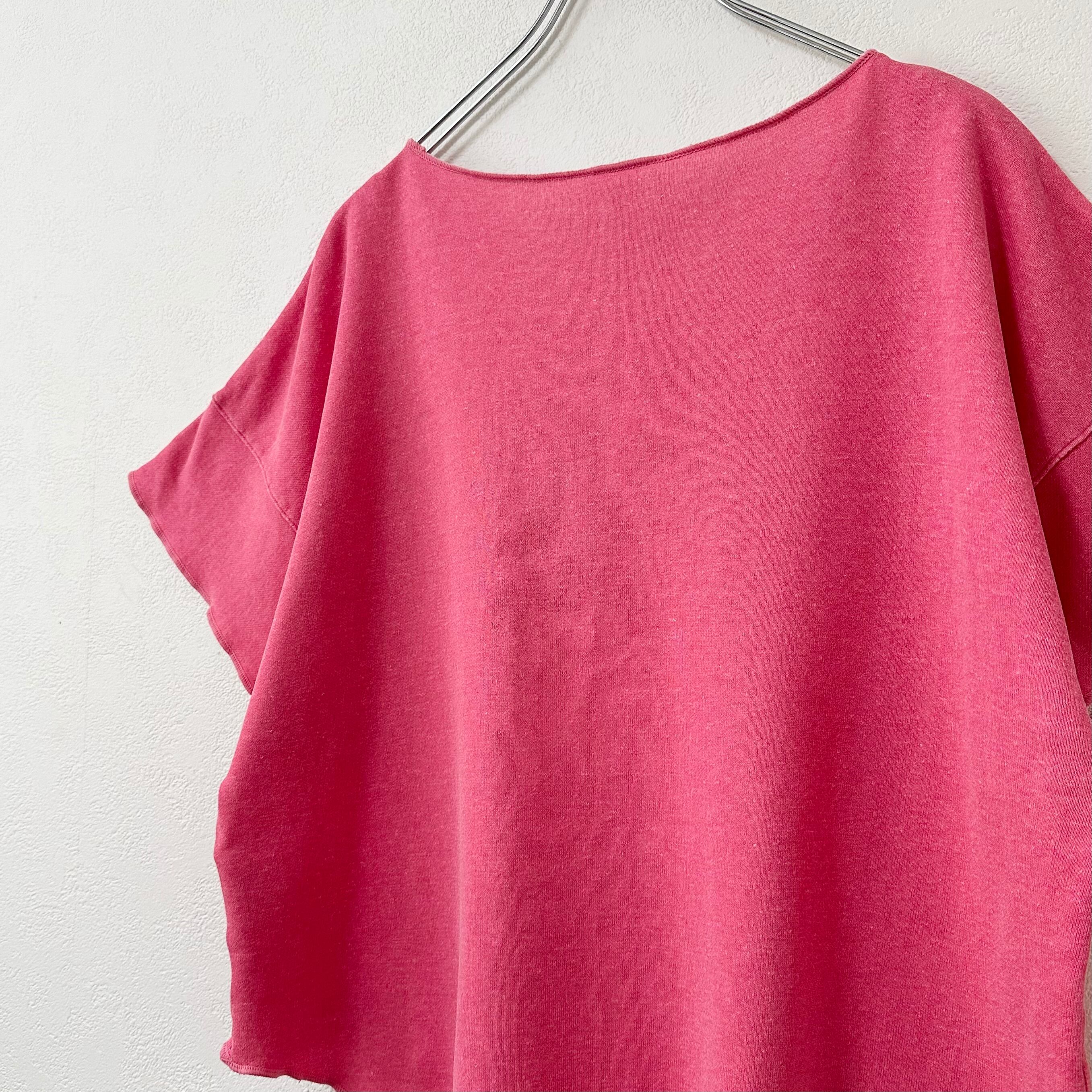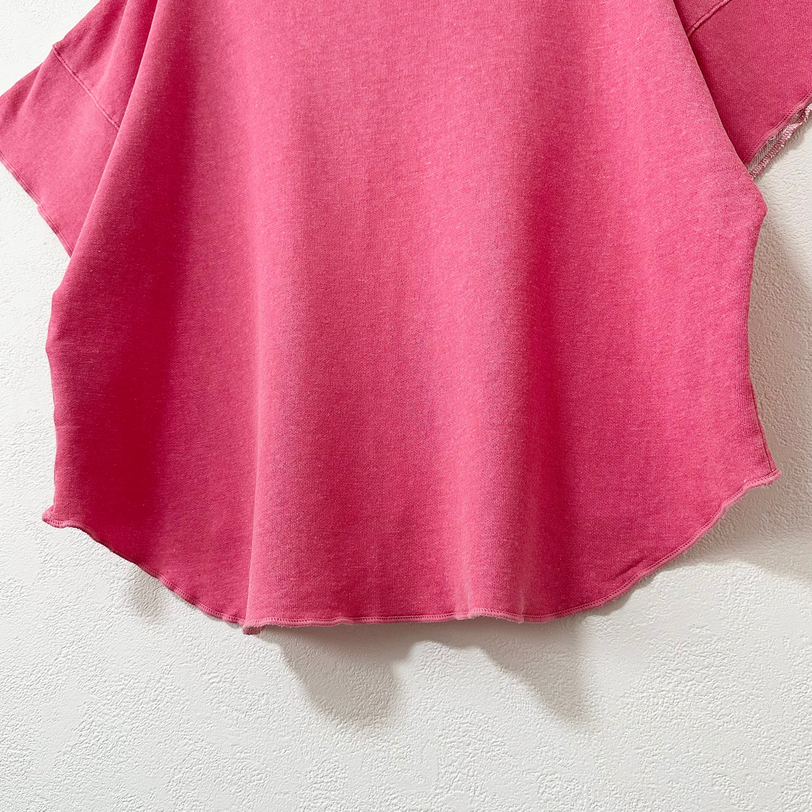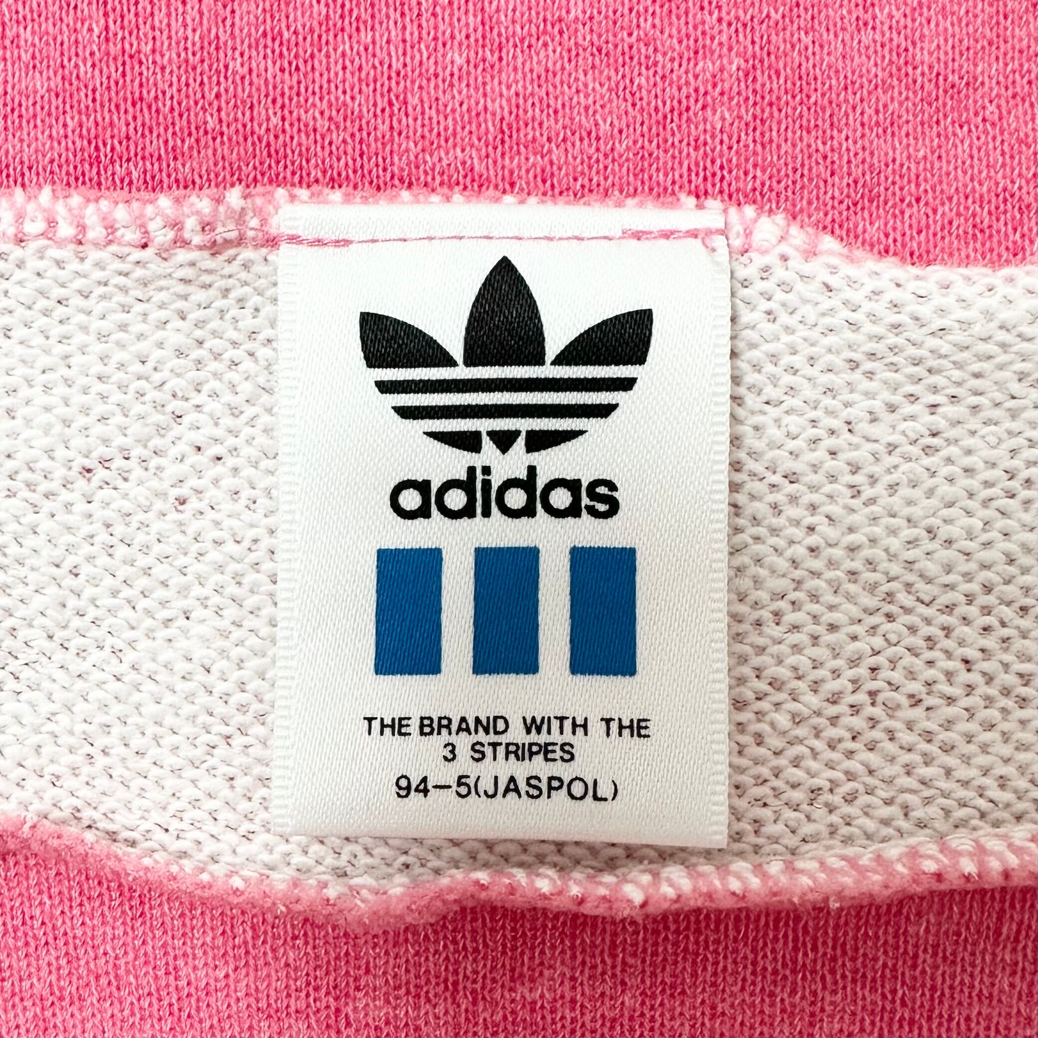 美品★80s★adidas/アディダス★デサント社製★薄手★スウェットTシャツ/スウェT★切りっぱなし★ピンク×ブラック/黒★L〜
