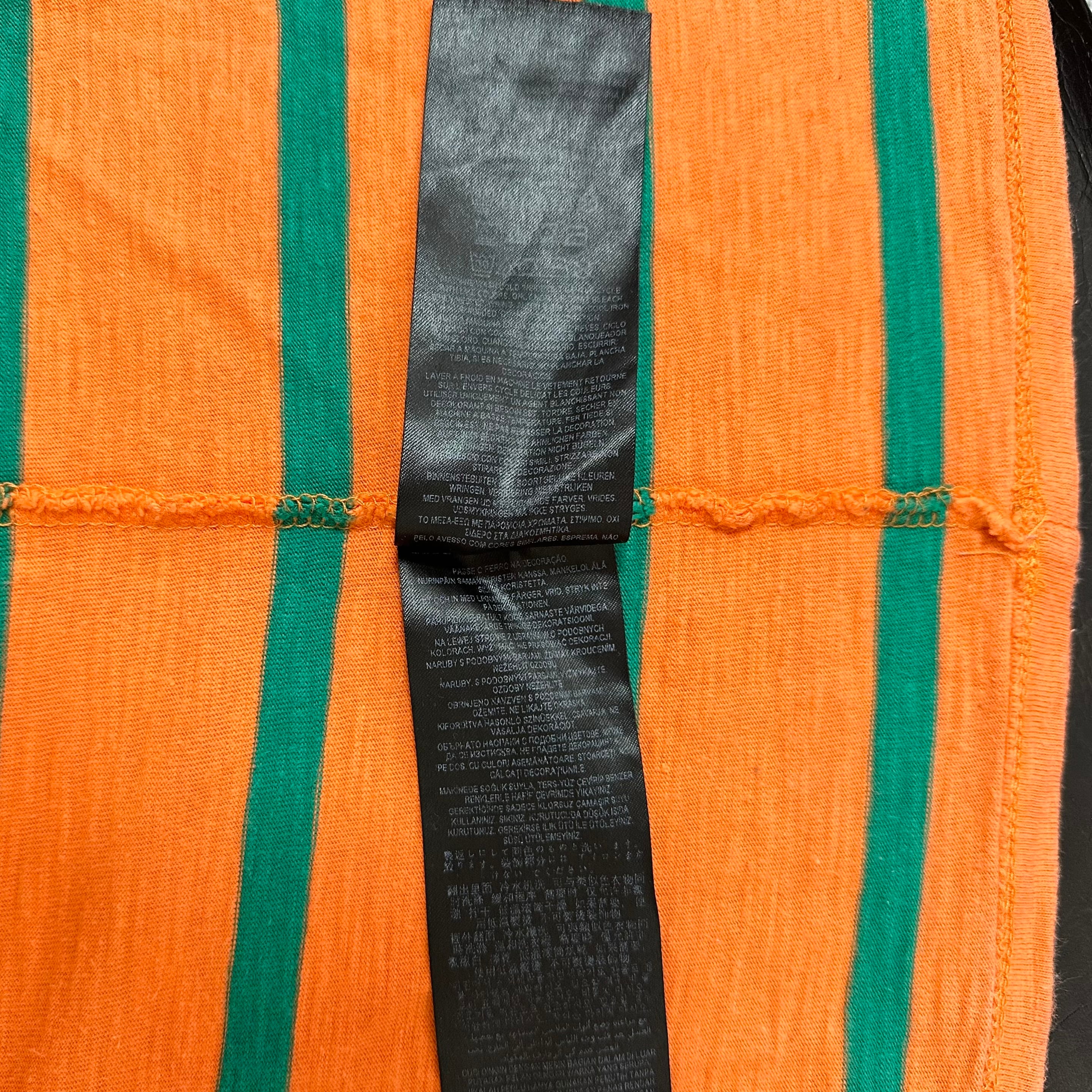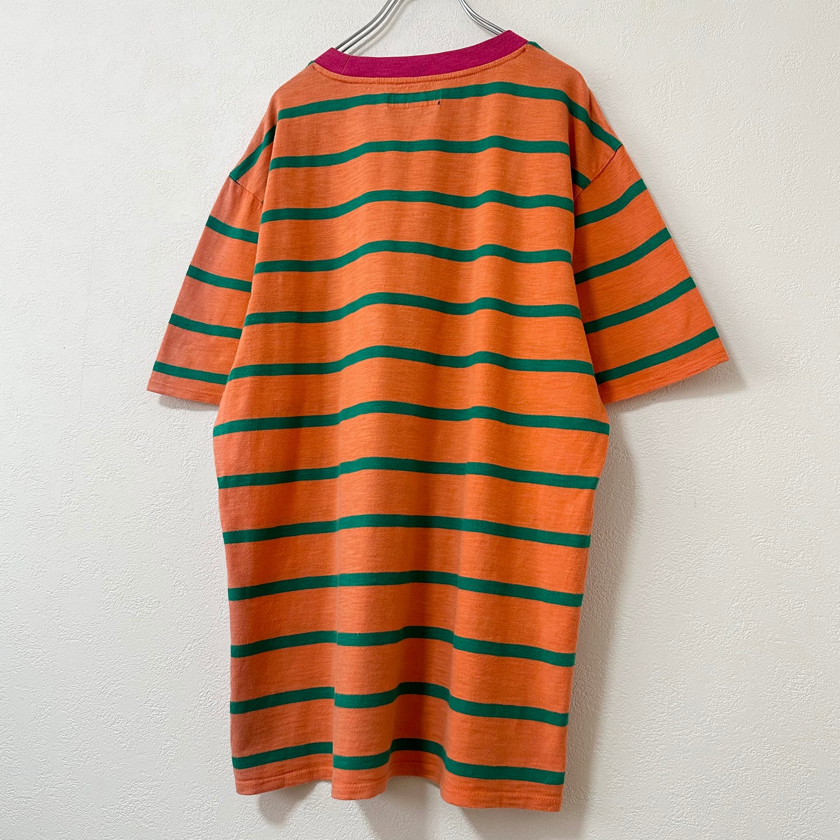 GUESS/ゲス×J.BALVIN/ジェイ・バルビン★半袖Tシャツ★ボーダー★オレンジ×グリーン/緑×ピンク★US S/M〜L相当