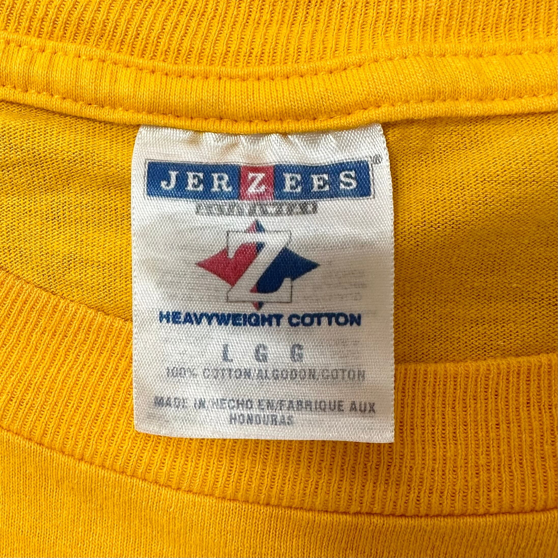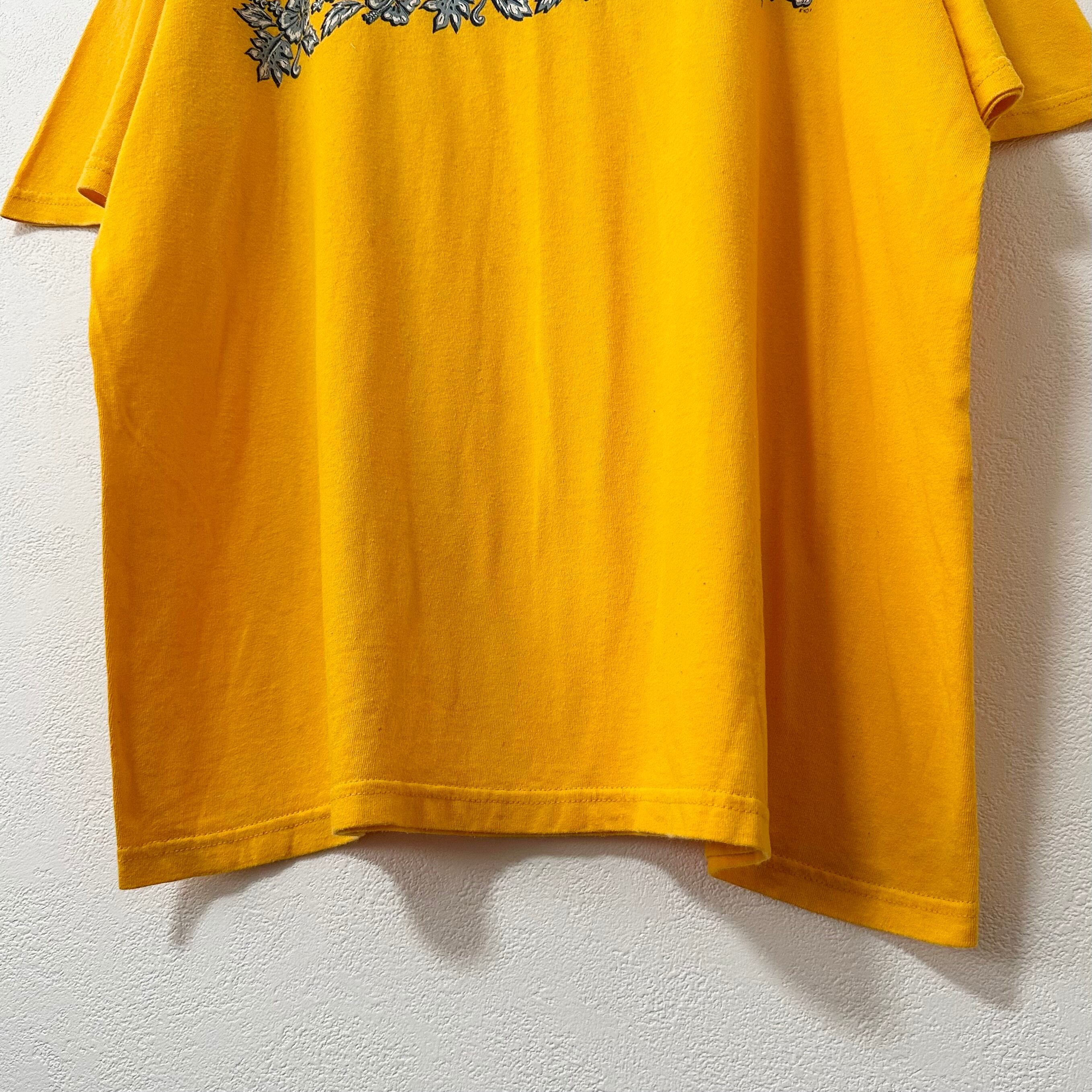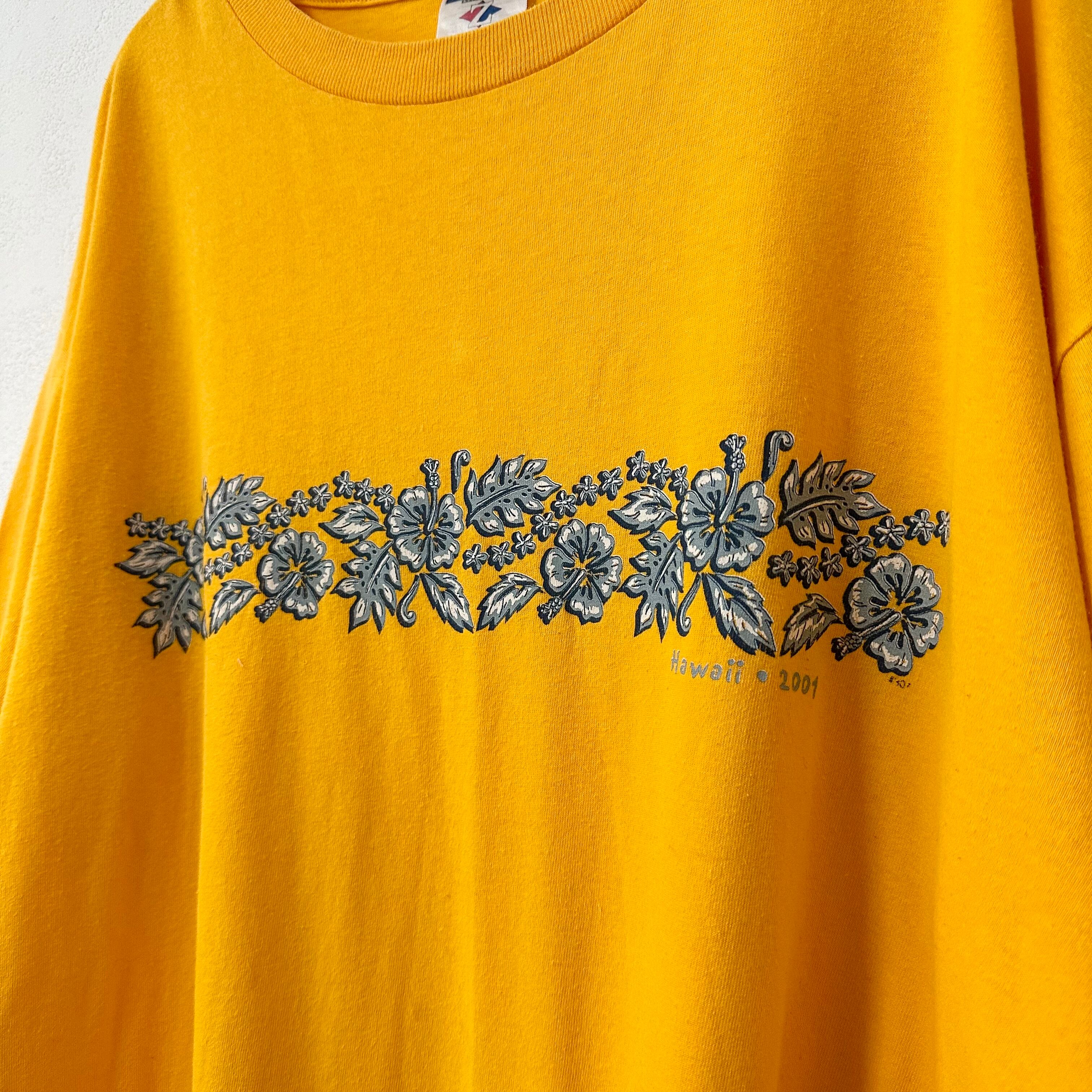 00s★JERZEES/ジャージーズ★半袖Tシャツ★両面ハイビスカス柄★黄★L