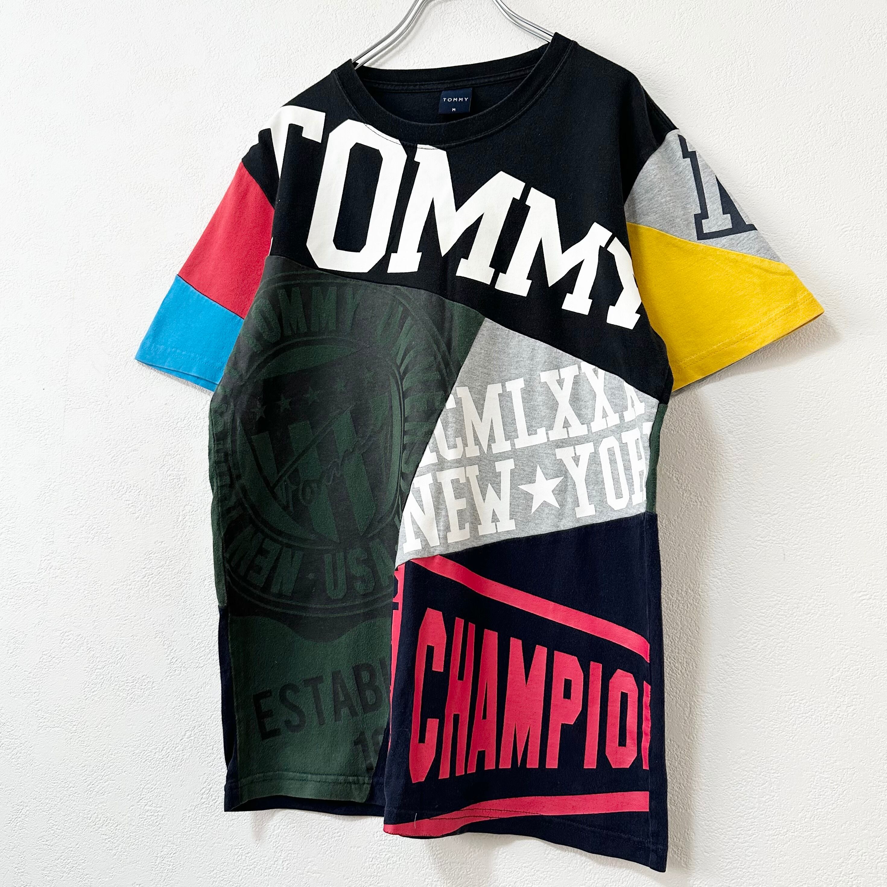 美品★00s★TOMMY/トミー★半袖総柄Tシャツ★パッチワーク★クレイジー★M