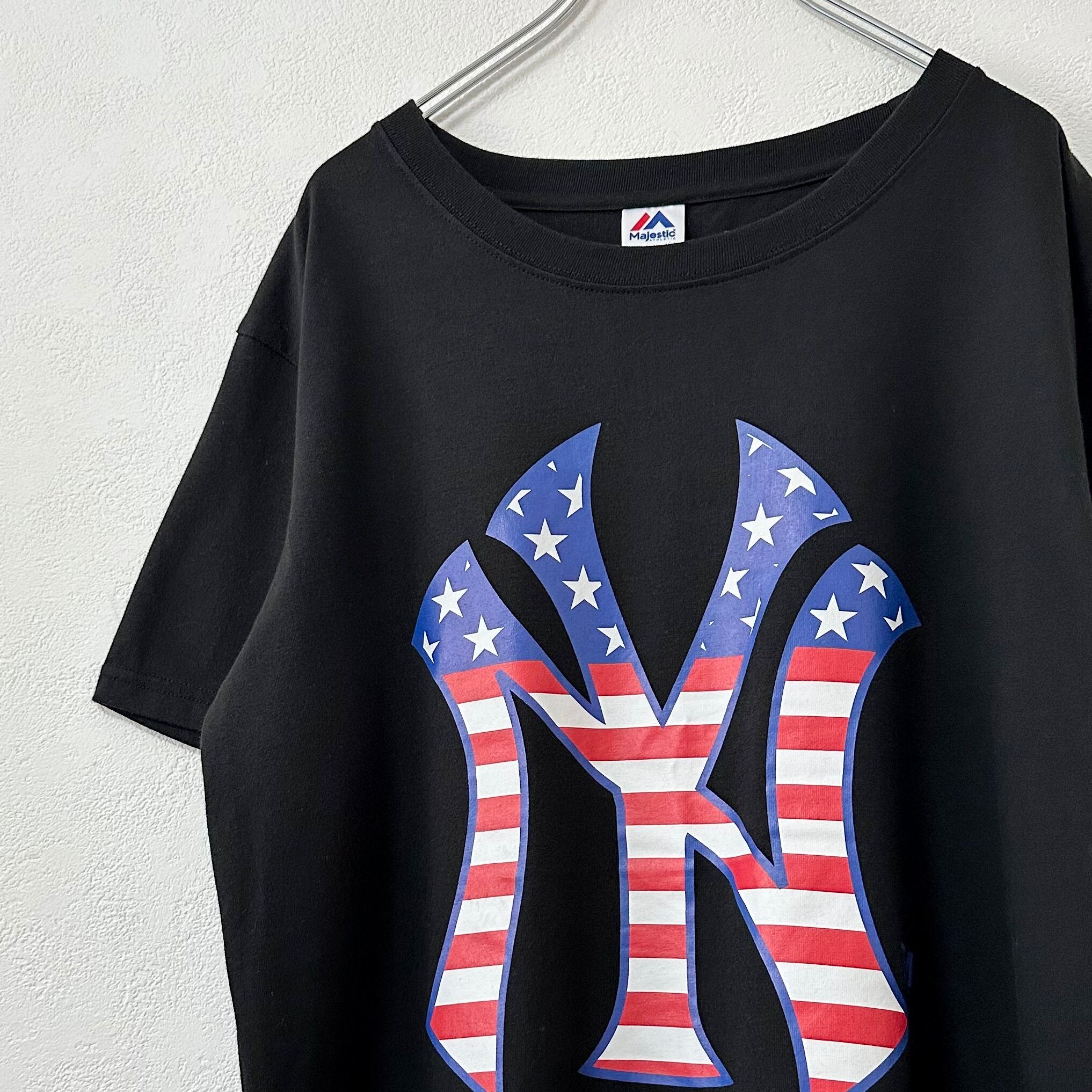美品★Majestic/マジェスティック★NY Yankees★ニューヨーク ヤンキース★半袖Tシャツ★星条旗★ブラック/黒★L