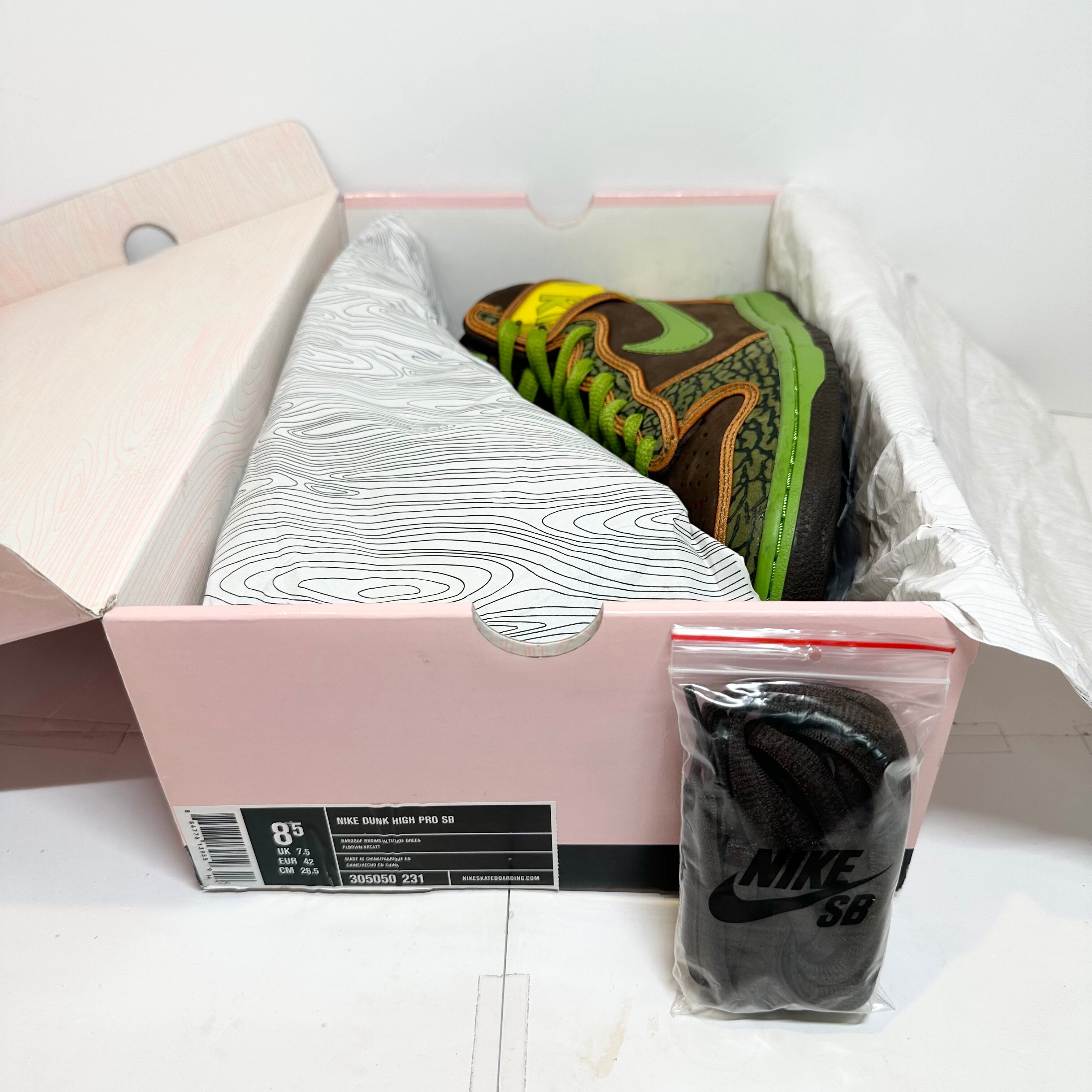 Nike SB/ナイキ エスビー★Dunk Hi Pro/ダンク ハイ プロ★DeLaSoul/デラソウル★305050-231★ブラウン×グリーン/茶緑★箱&替紐付★26.5