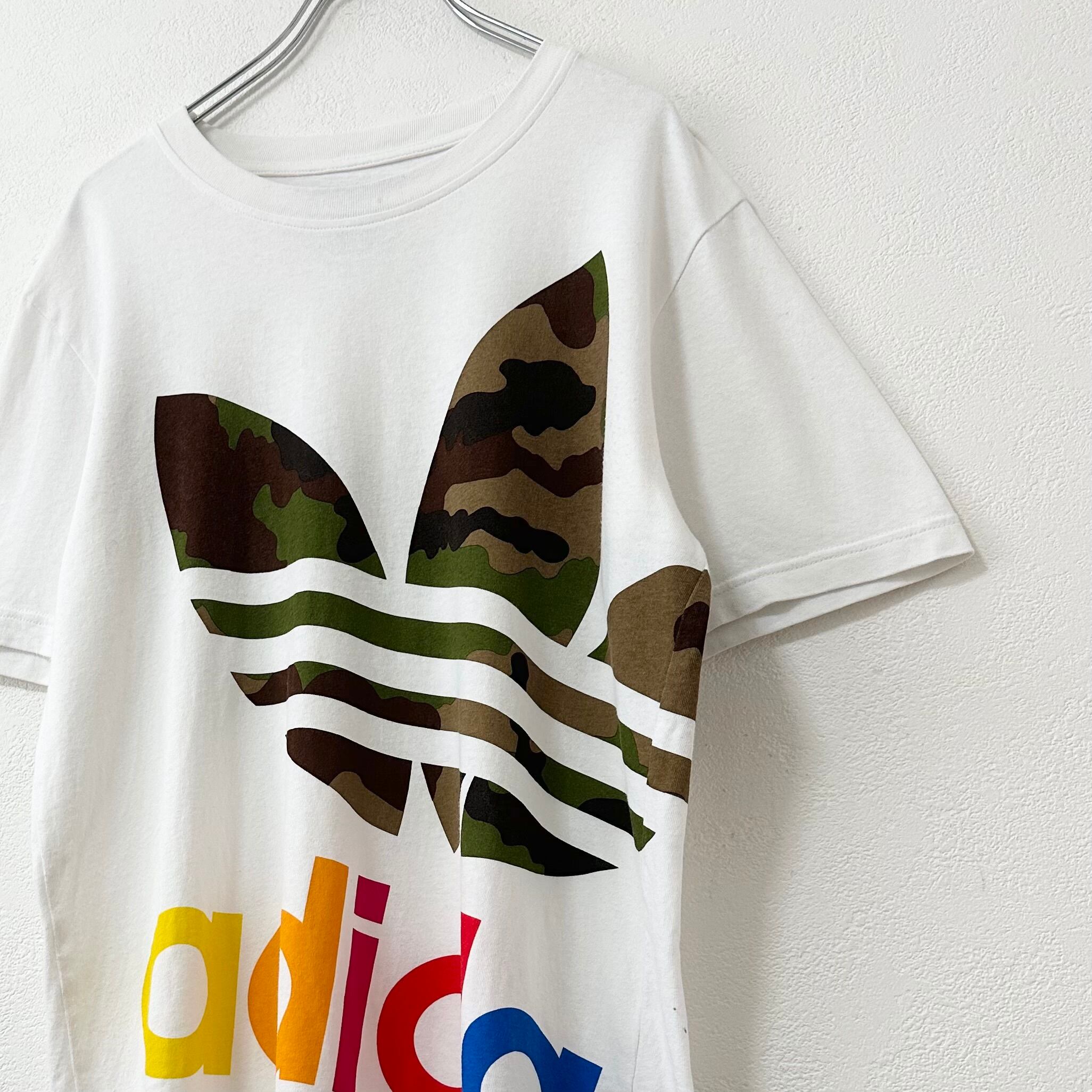 adidas/アディダス★半袖Tシャツ★ホワイト/白×カモ/迷彩×レインボー★S