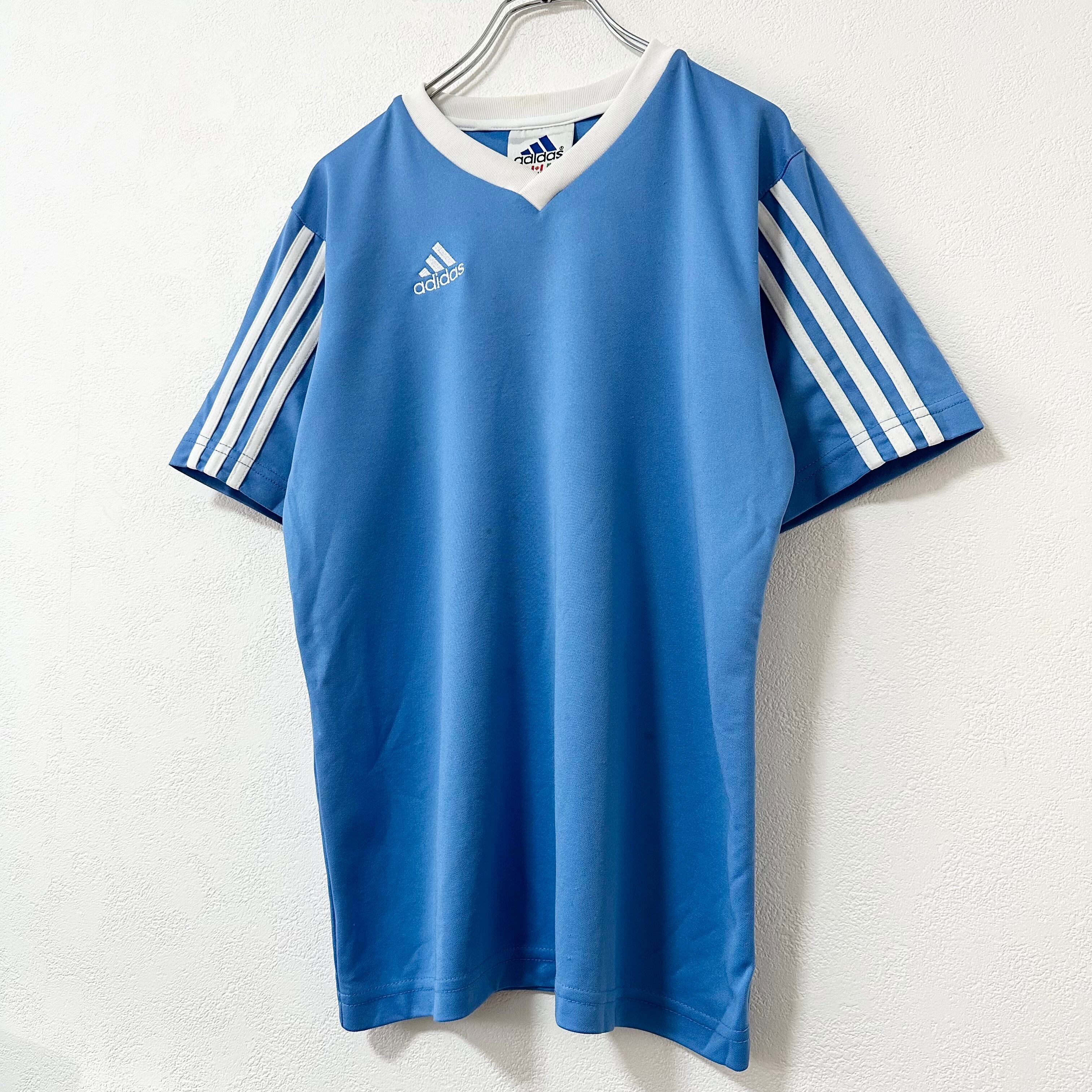 90s★万国旗タグ★adidas/アディダス★ゲームシャツ/半袖Tシャツ★レトロ★ライトブルー/水色×ホワイト/白★L