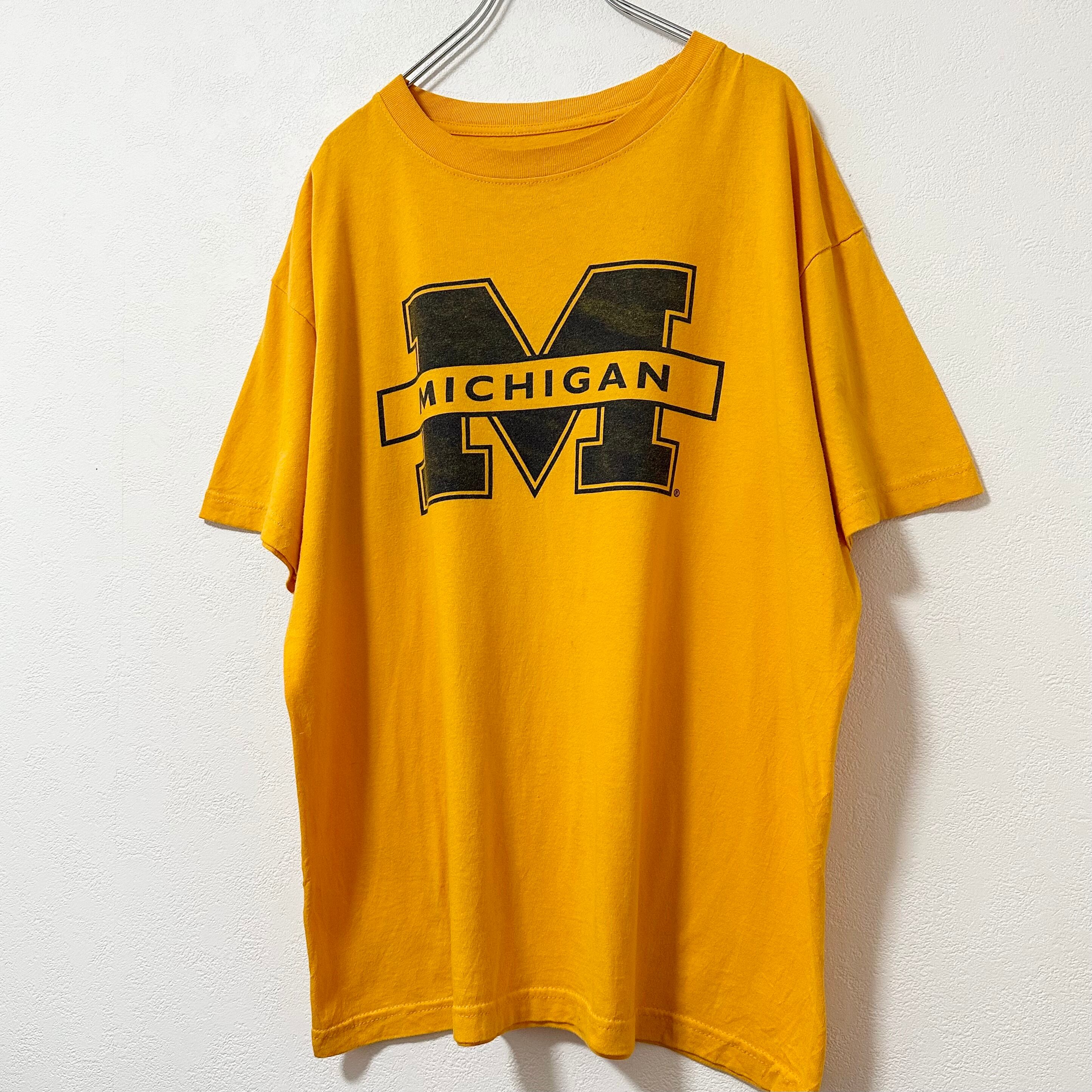 90s★Vintage/ヴィンテージ★MICHIGAN/ミシガン★半袖Tシャツ★イエロー×ネイビー/黄紺★XL ※ミシガンカラー