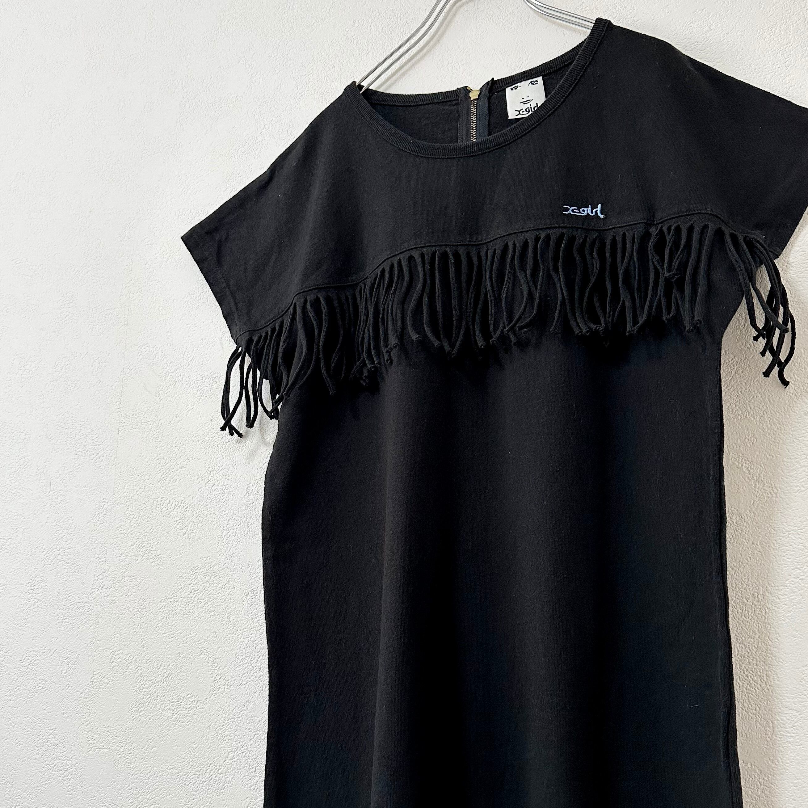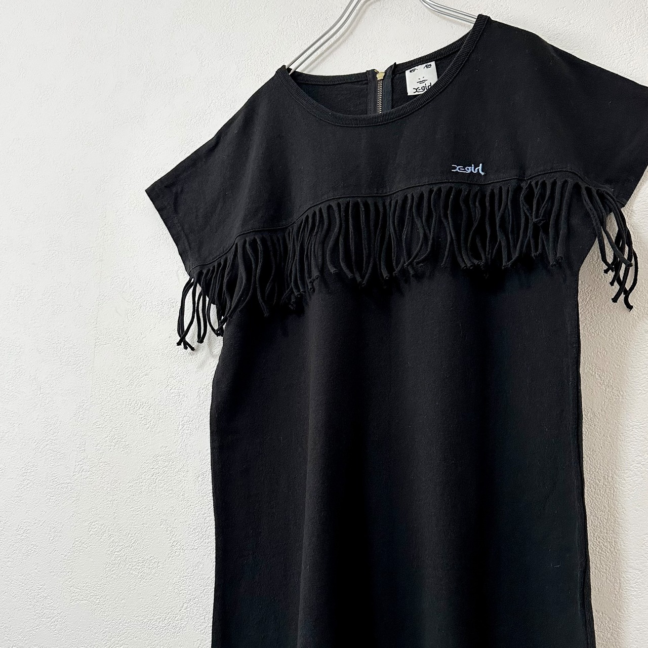 美品★x-girl/エックスガール★フリンジドレス/ワンピース★ブラック/黒★S