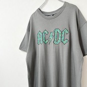 美品★ACDC★バンドTee★ミュージックTee★刺繍ロゴ★半袖Tシャツ★グレー/灰×グリーン/緑★M表記 ※L〜XL