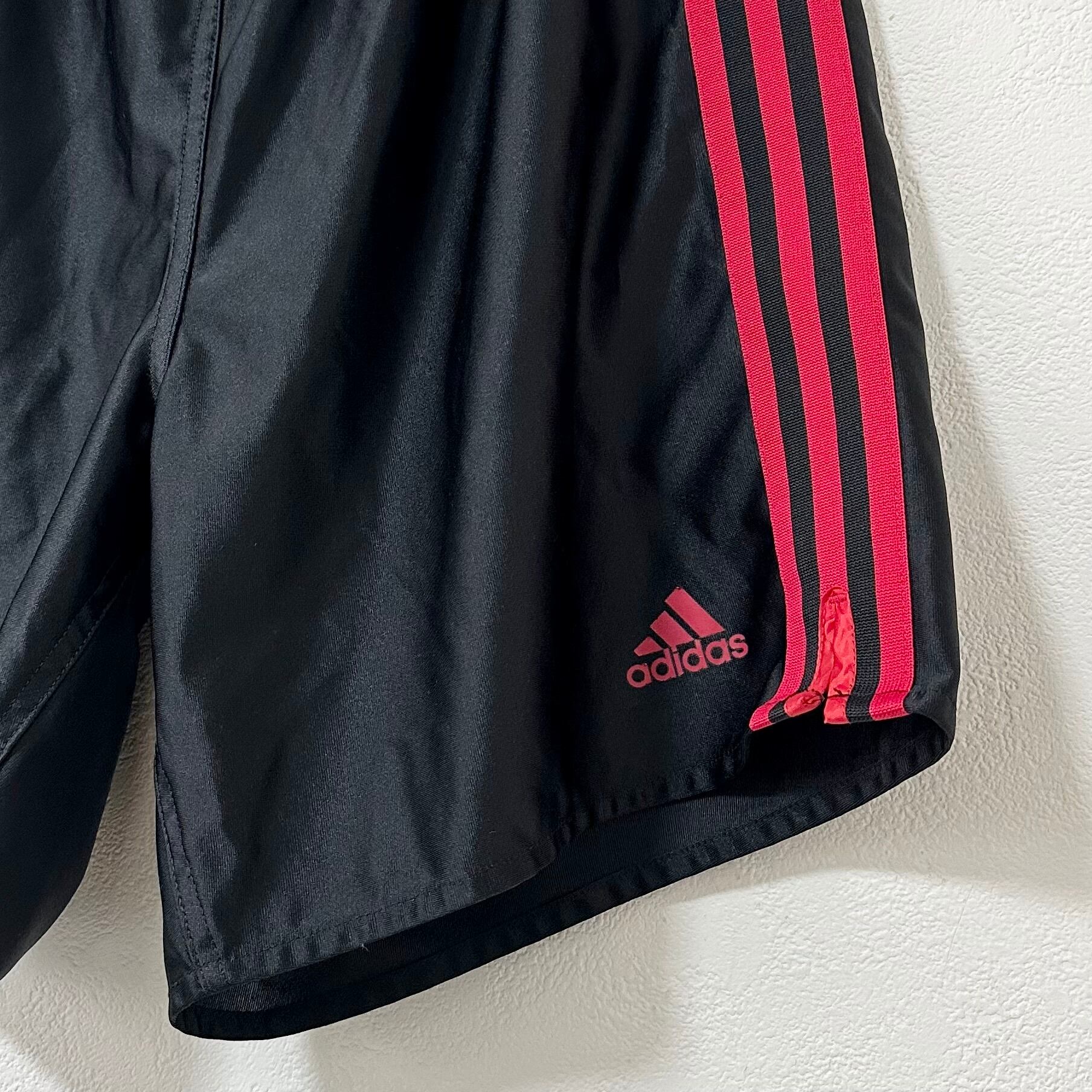 美品★adidas/アディダス★ゲームパンツ★ハーフパンツ★3ストライプ★ブラック×レッド/黒赤★J O/L〜XL相当