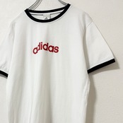 美品★00s★adidas/アディダス★半袖リンガーTシャツ★ホワイト×ネイビー×レッド/白紺赤★L.