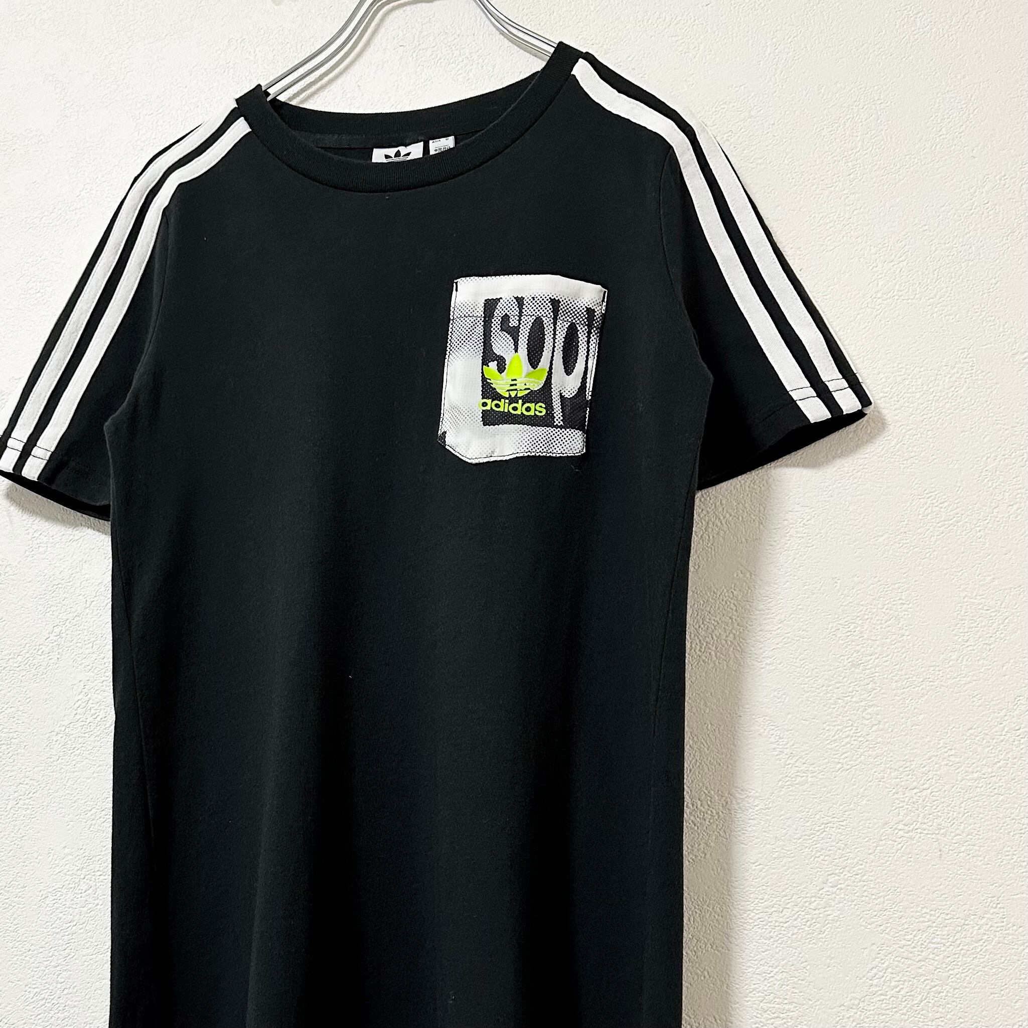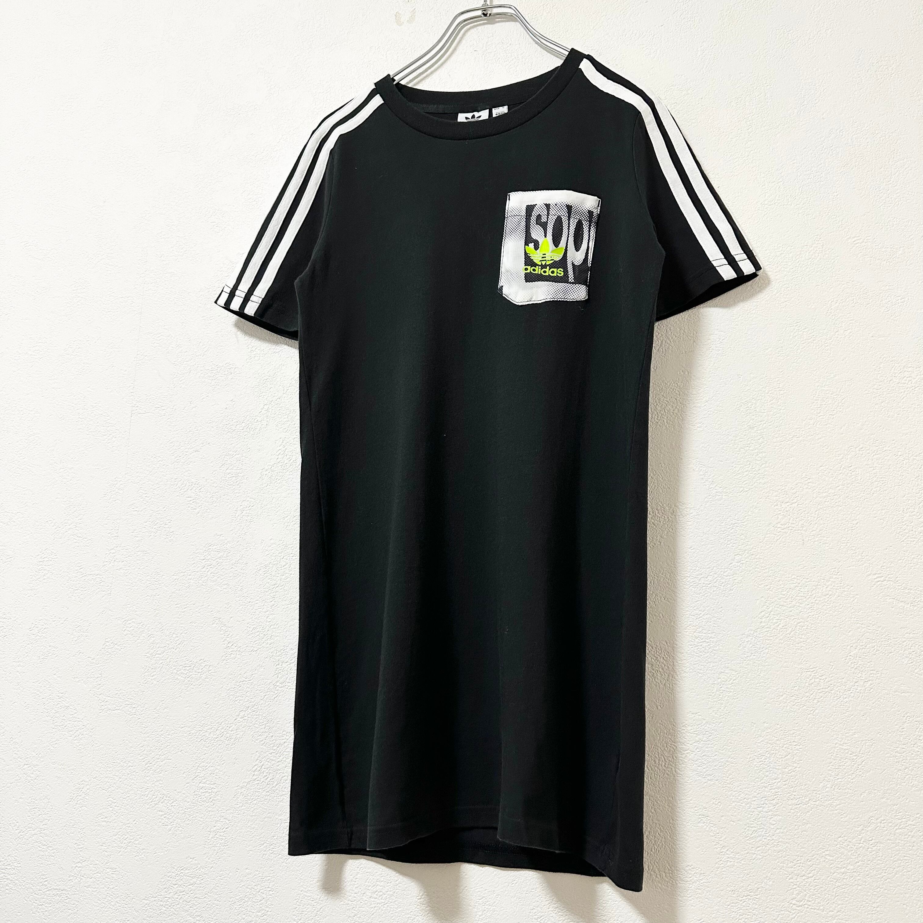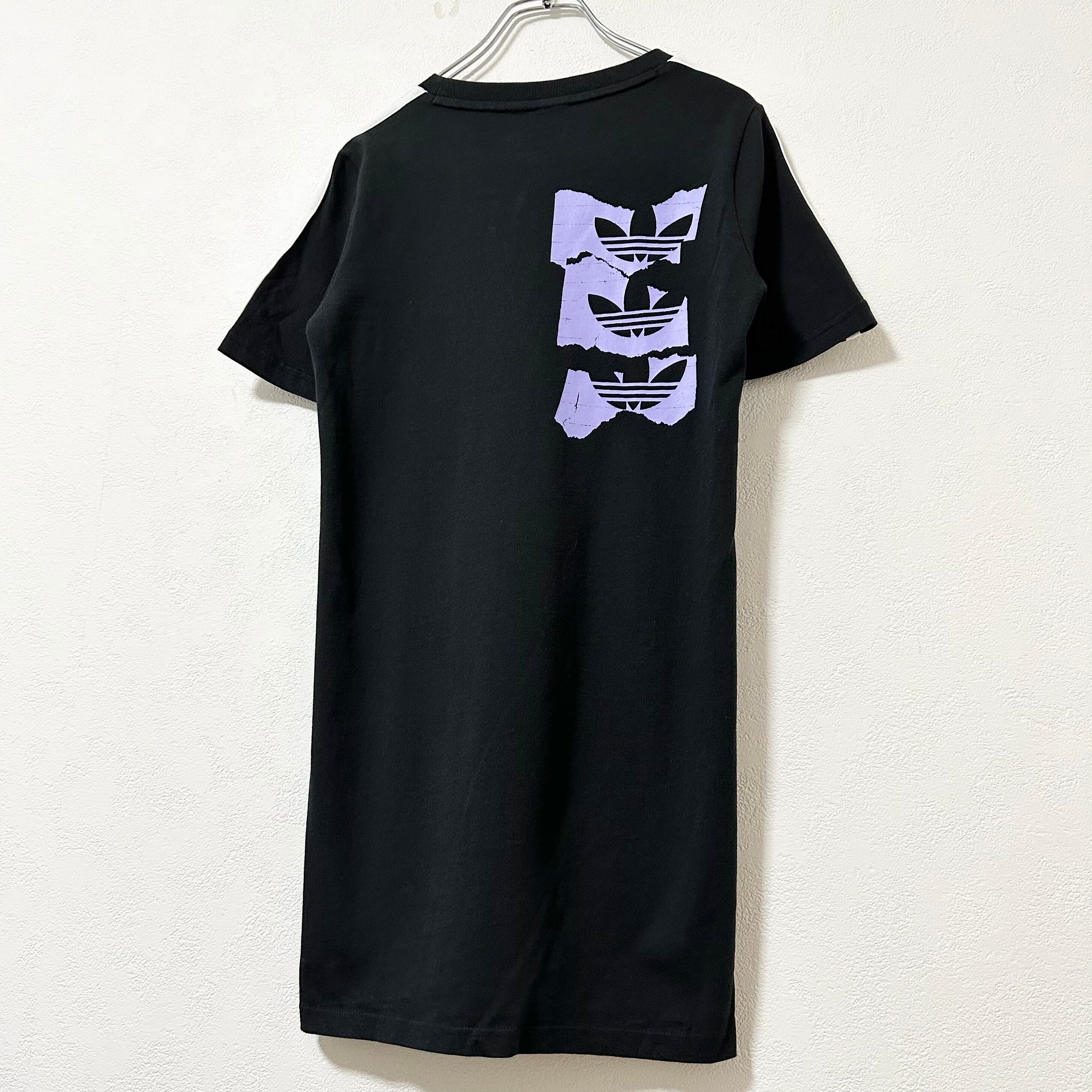 美品★adidas/アディダス★ワンピース★TeeDress/ティードレス★3ストライプ★ブラック/黒×白×黄緑×紫★XS