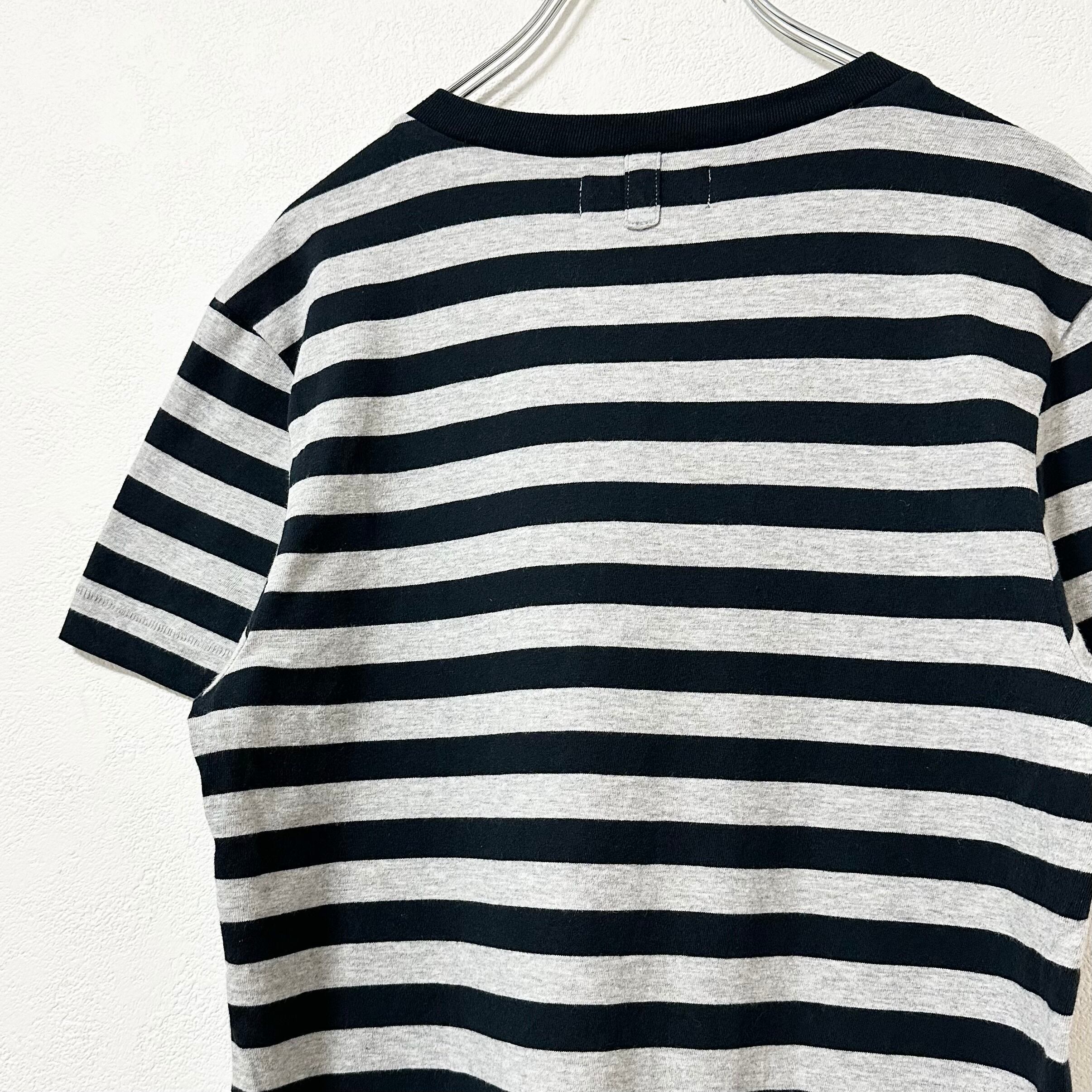 美品★00s★adidas/アディダス★半袖ボーダーVネックTシャツ★トレフォイルロゴ★ネイビー/紺×グレー★Sぬ