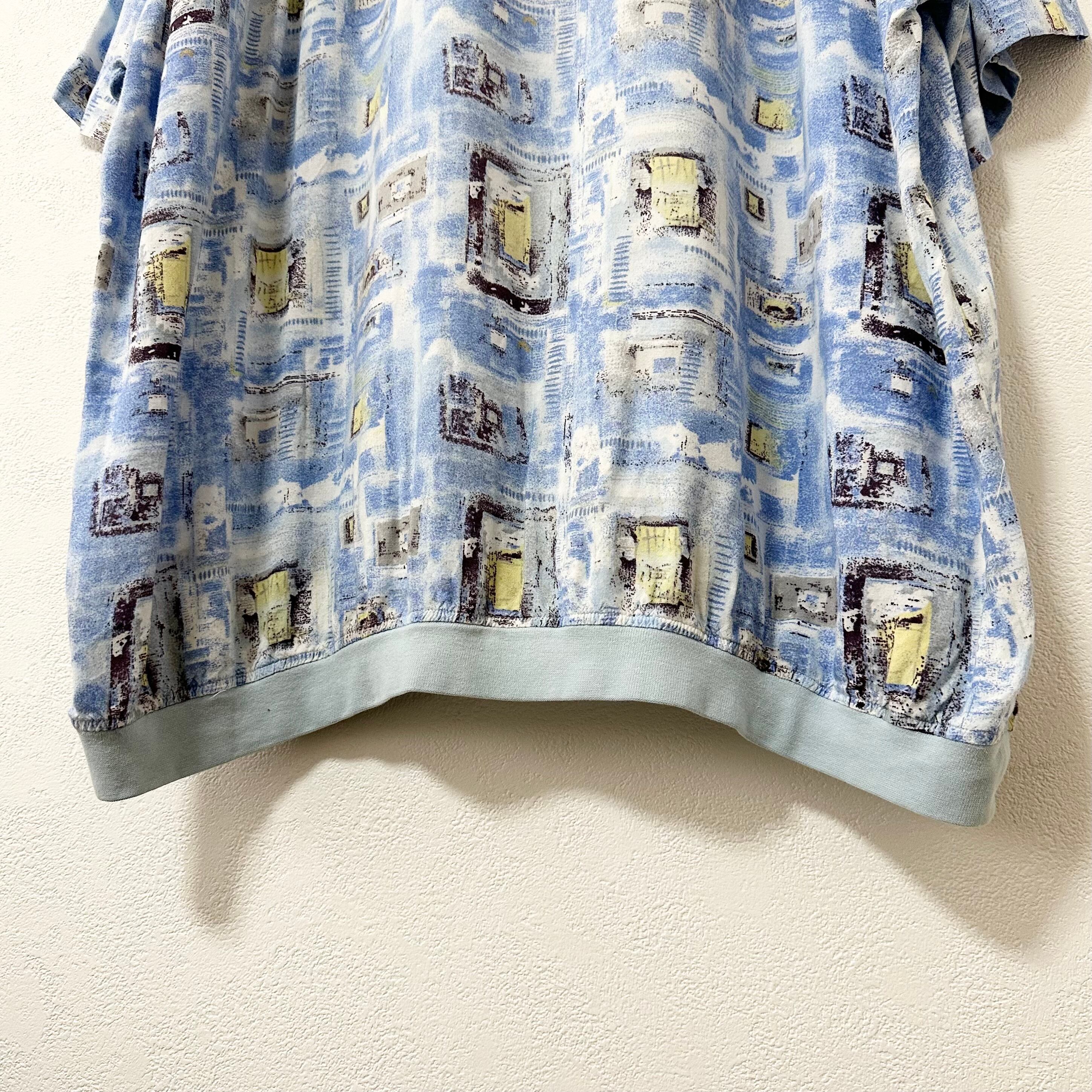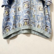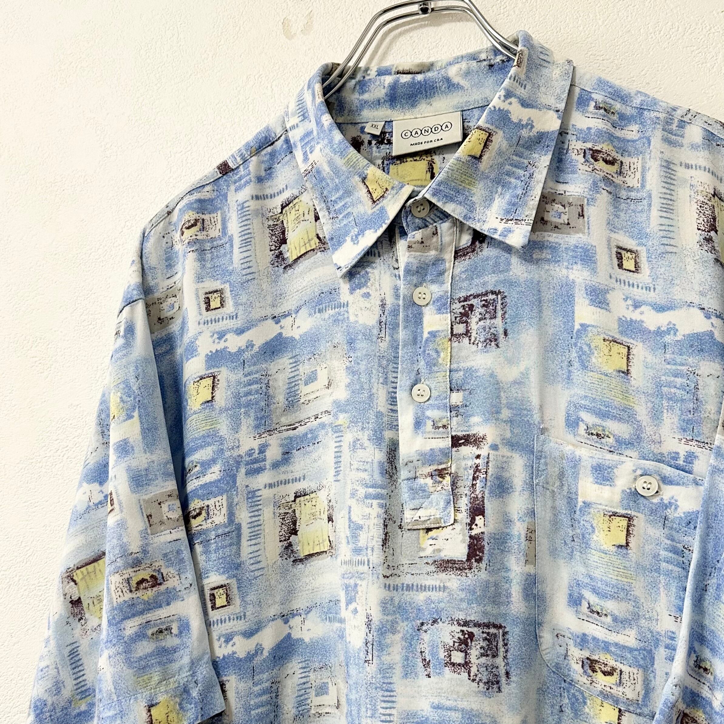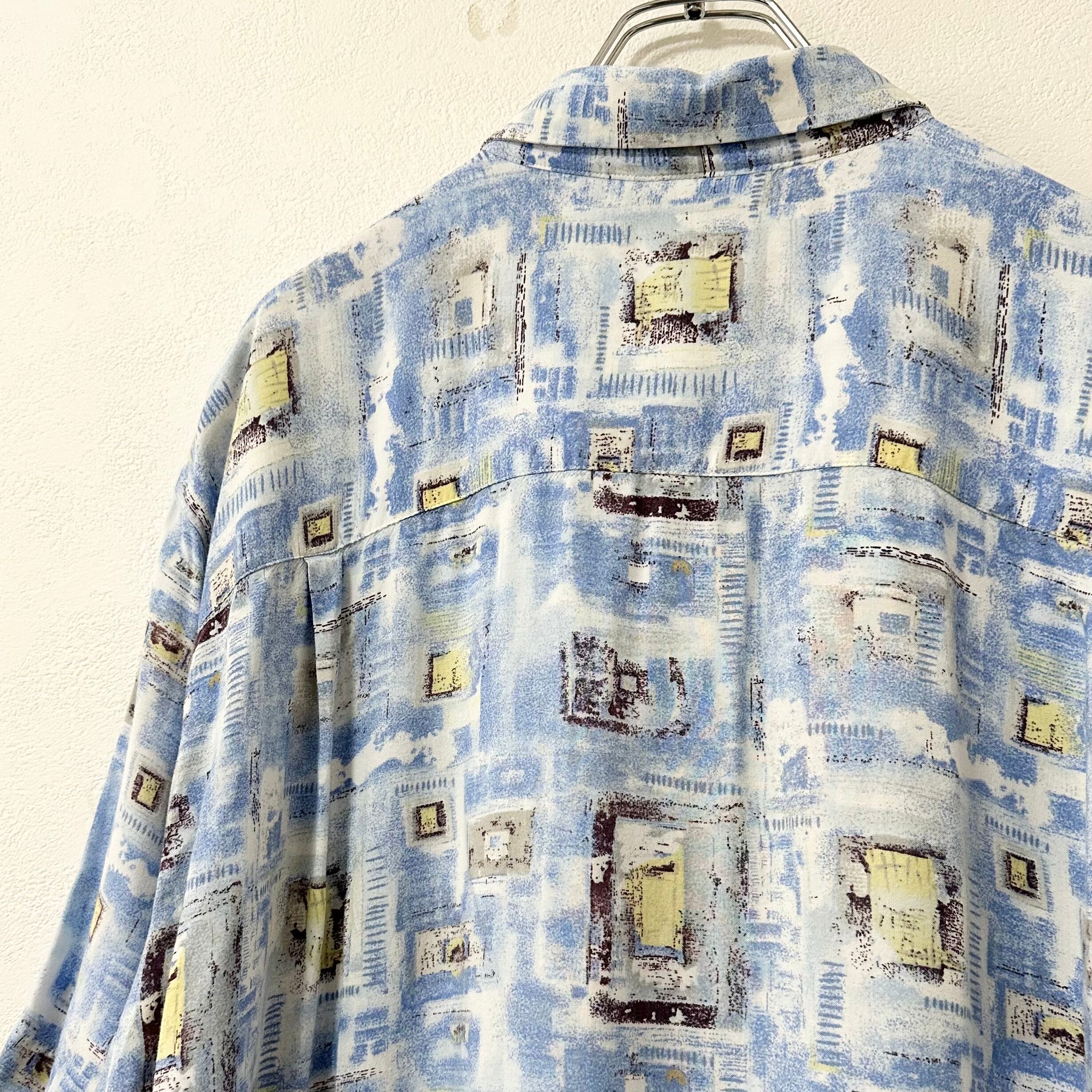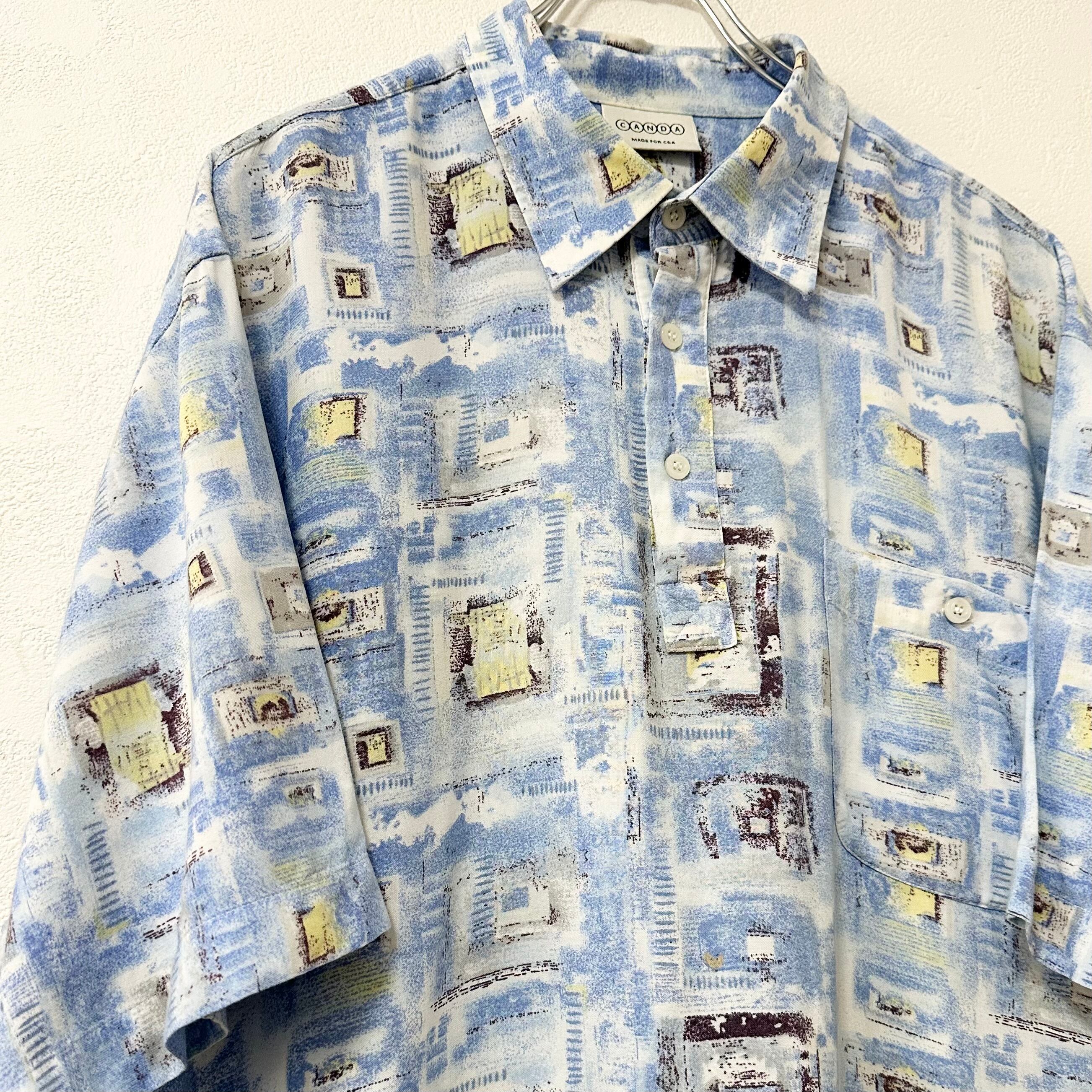 80s★EUヴィンテージ★canda★総柄レーヨンシャツ★ブルー/水色★XXL