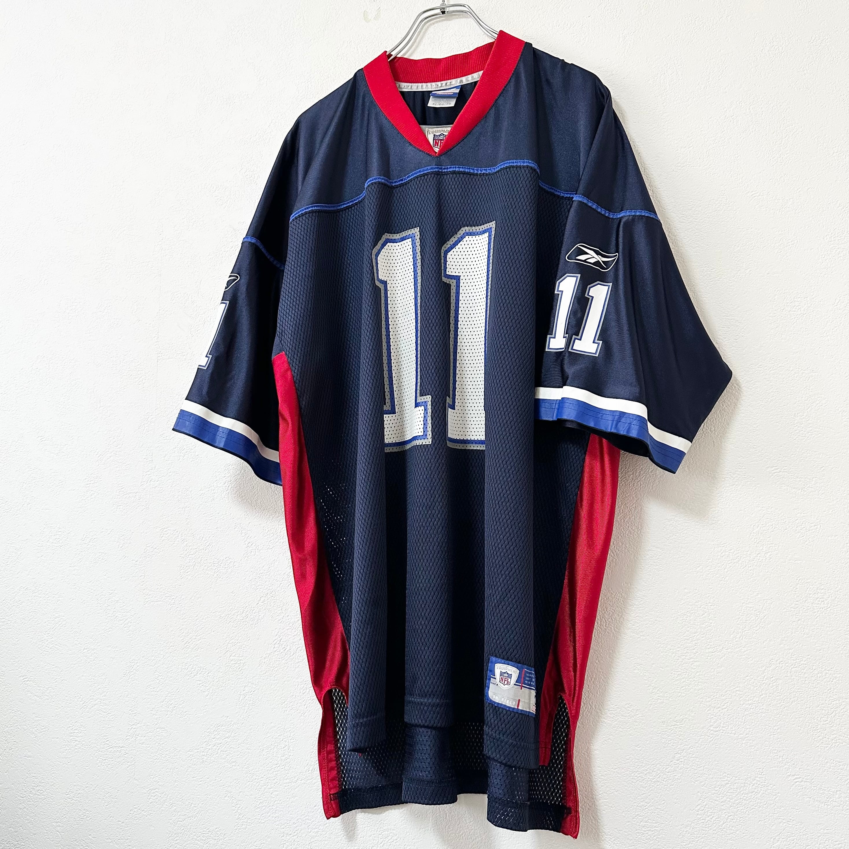 美品★Reebok/リーボック★NFL Patriots/ペイトリオッツ★アメフトゲームシャツ★ネイビー/紺赤白★XL〜2XL相当