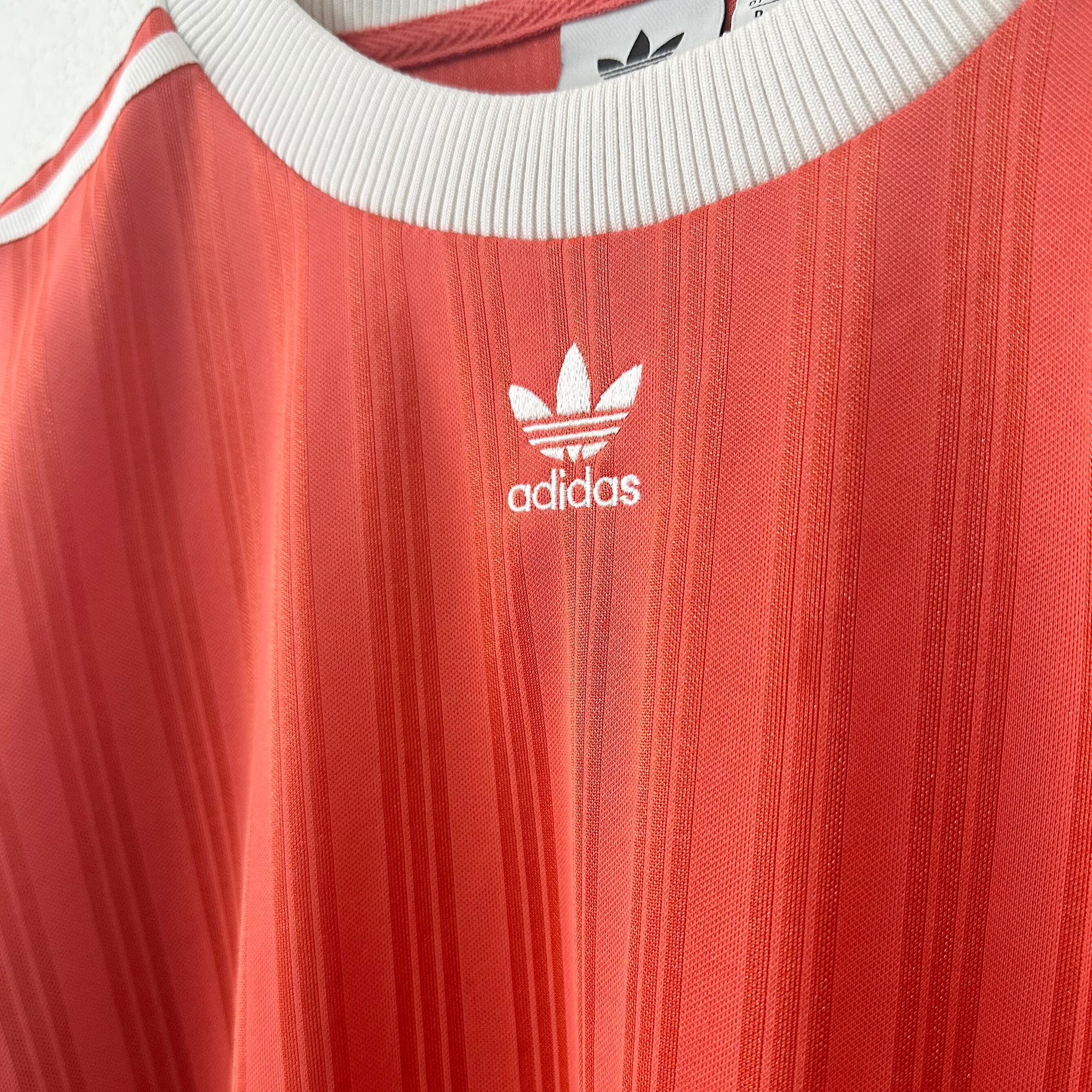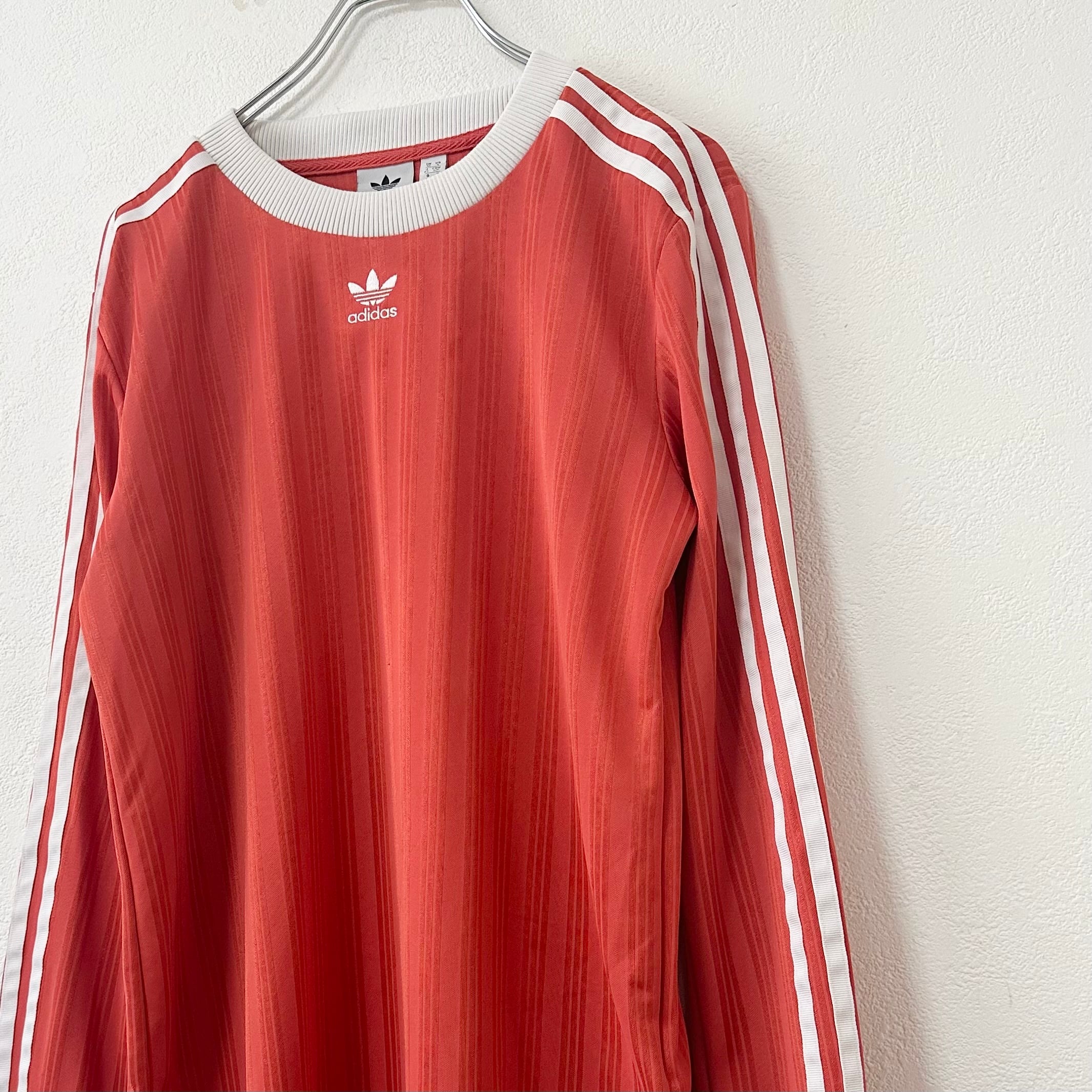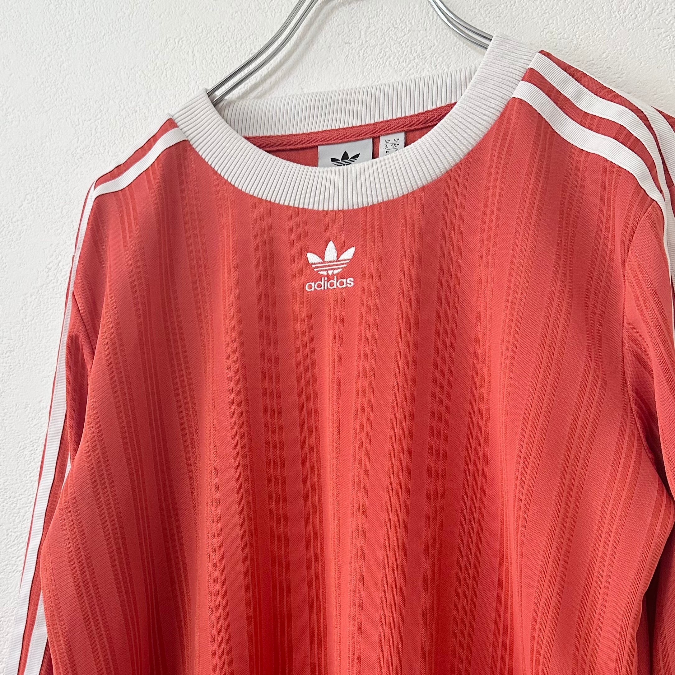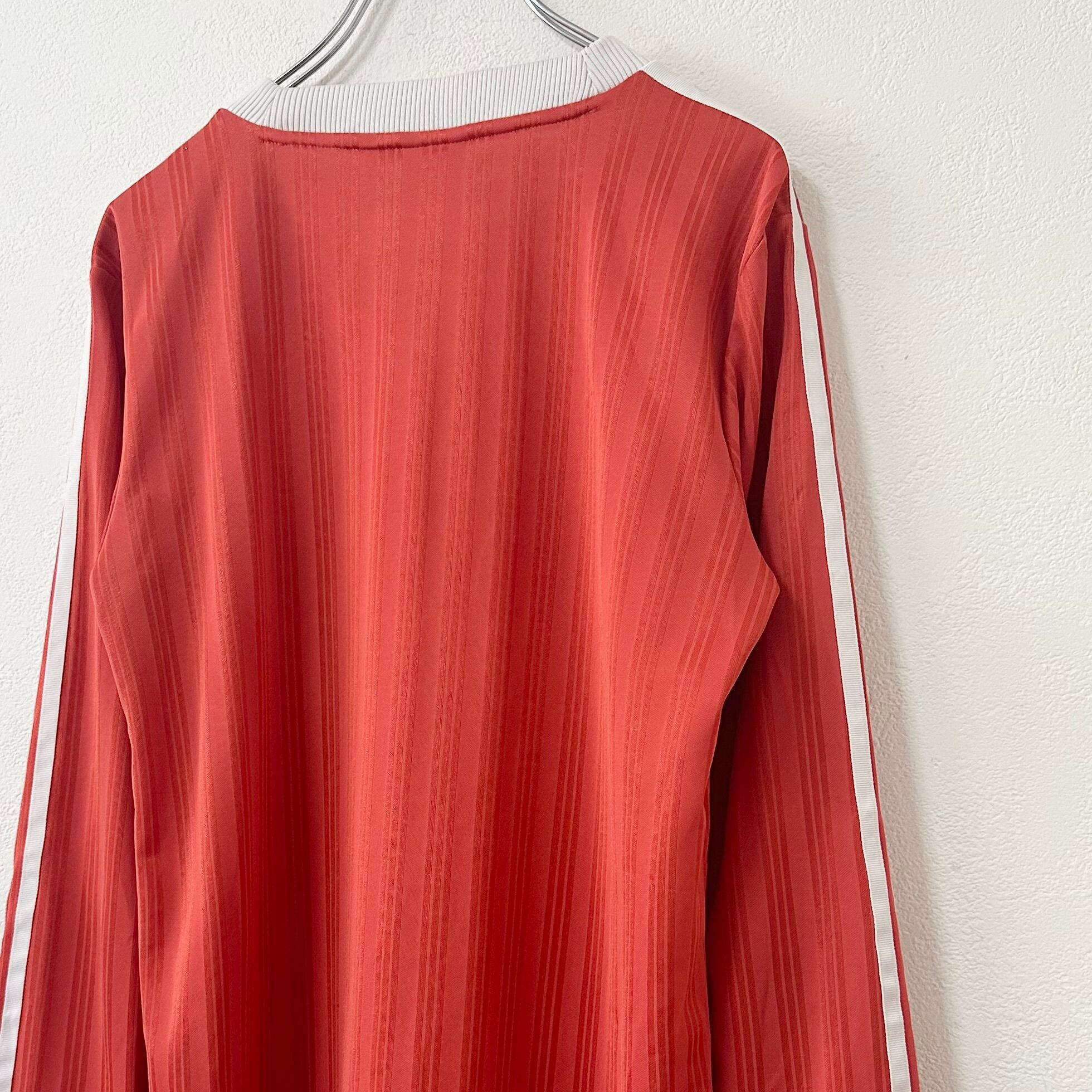 美品★adidas/アディダス★GameShirt/ゲームシャツ★長袖ユニフォーム★3ストライプ★サーモンピンク/オレンジ/スカーレット系★ML相当