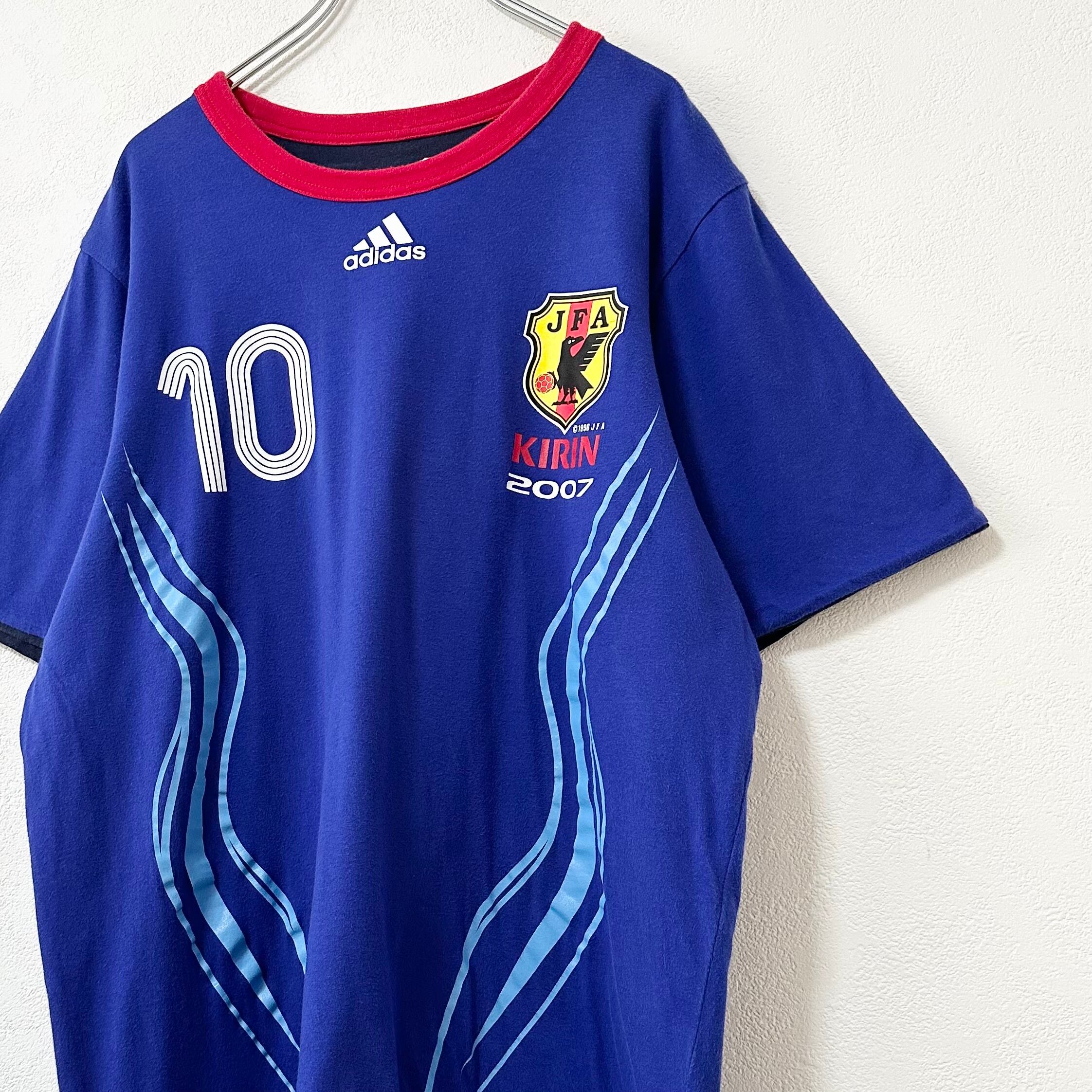 00s★リバーシブル★adidas/アディダス★サッカー日本代表★両面Tシャツ★リンガーネック★ブルー/青★ネイビー/紺★L