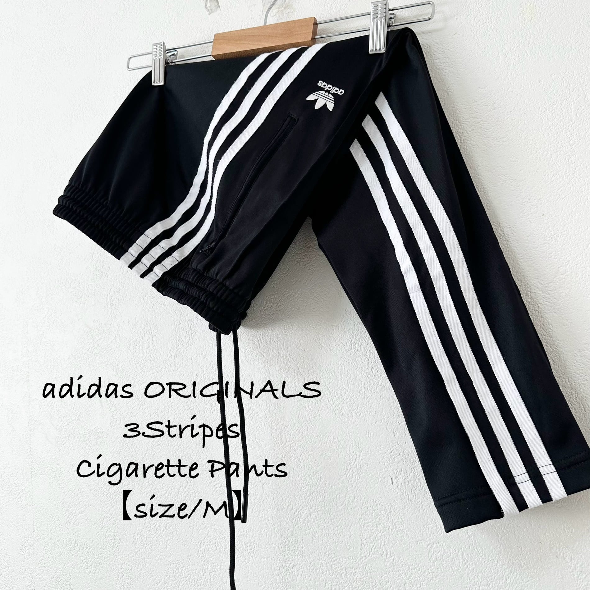 adidas/アディダス★シガレットパンツ/ジャージ★トラックパンツ★スリムパンツ★3ストライプ★ブラック×ホワイト/黒白★M