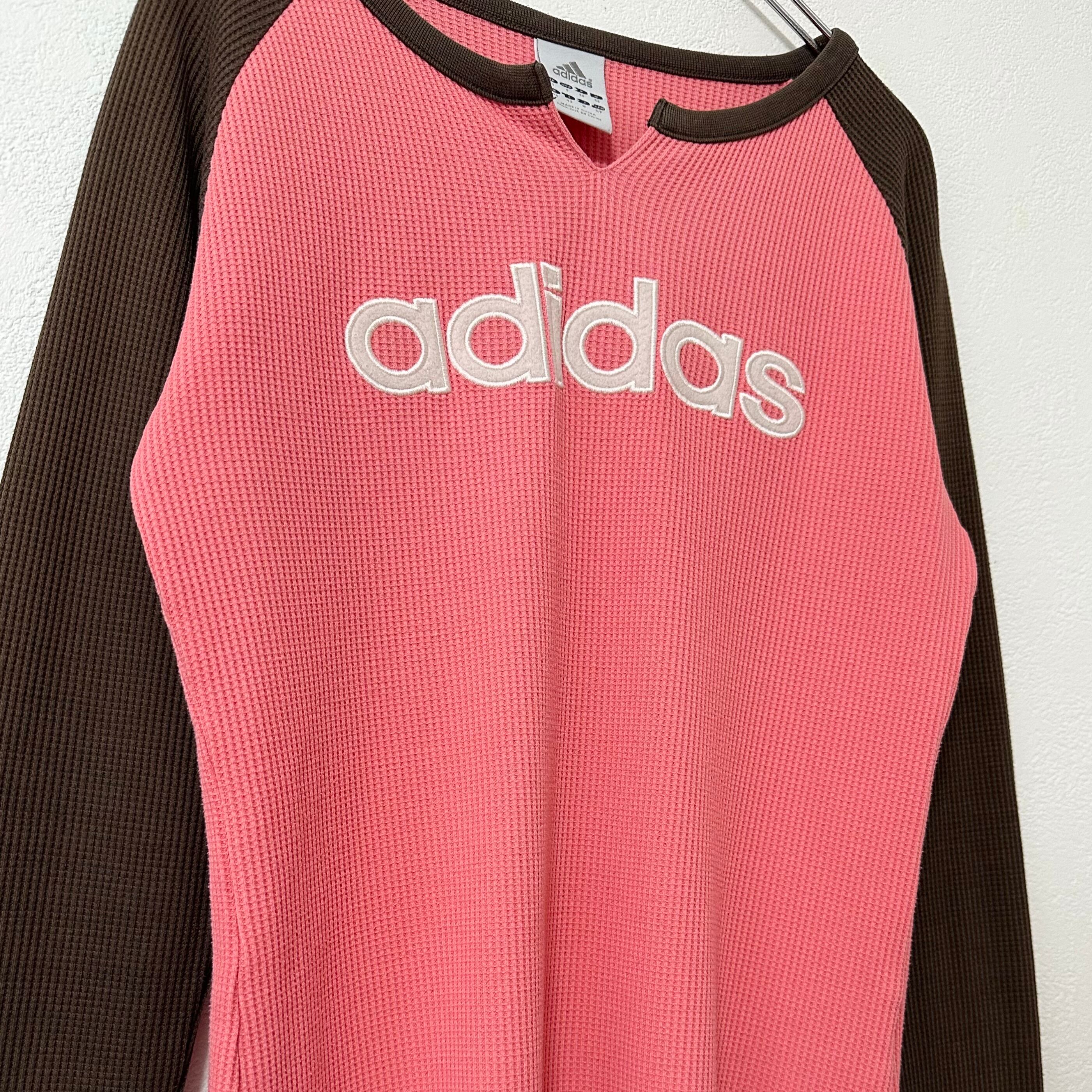 美品★00s★adidas/アディダス★ワッフル/ラグラン★長袖Tシャツ★ピンク×茶★M
