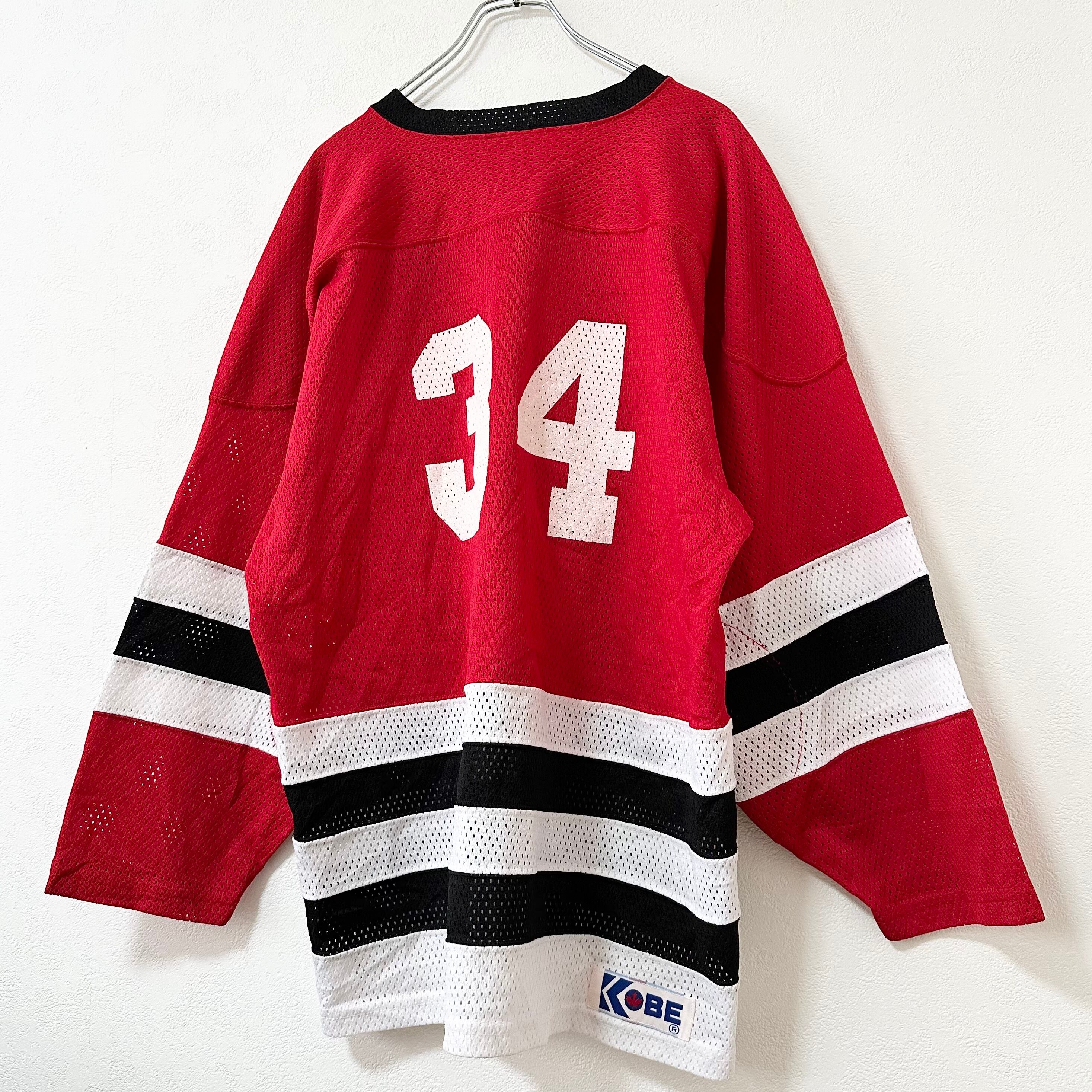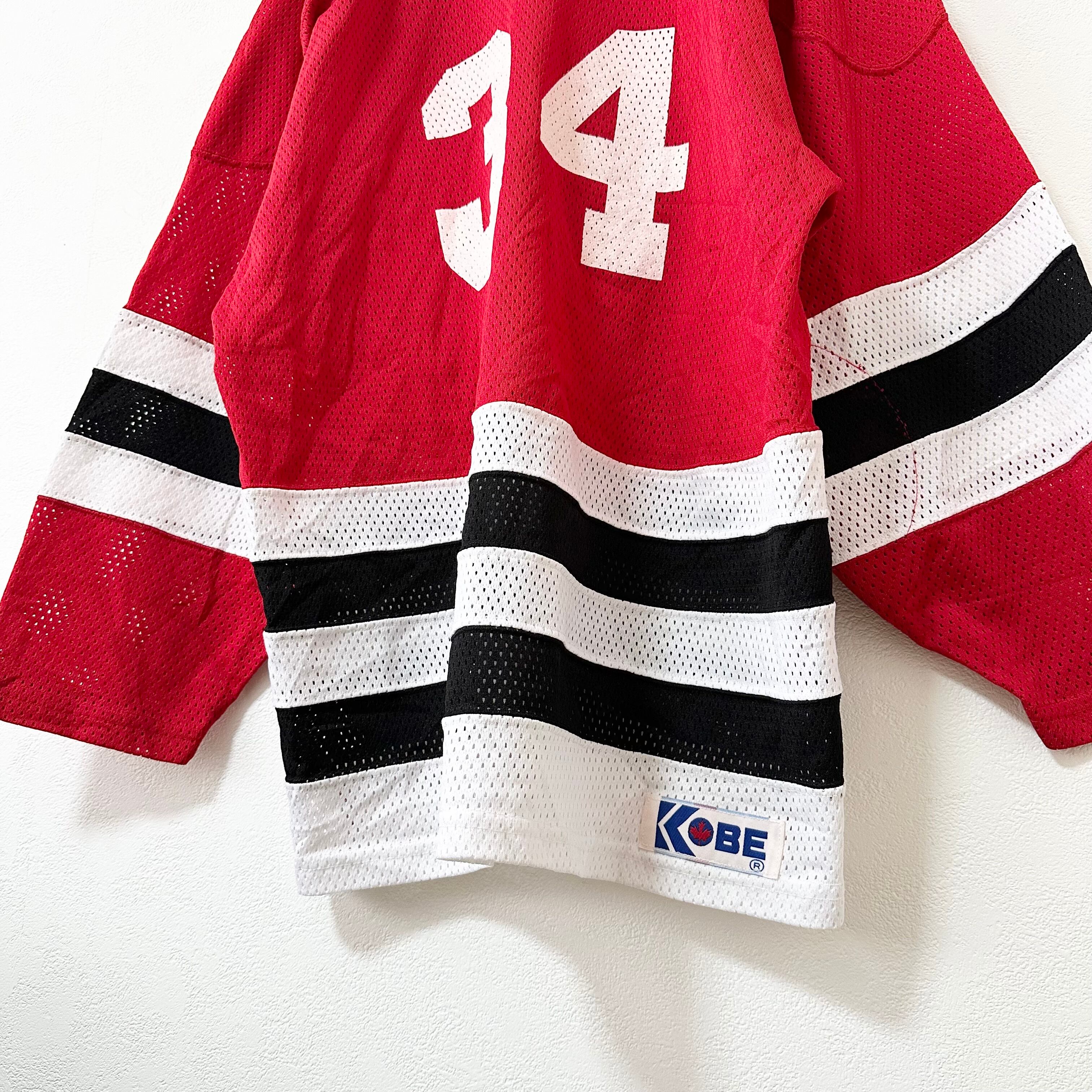 美品★90s★KOBE★ホッケーシャツ★ゲームシャツ★ユニフォーム★ジャージ★メッシュ★レッド×ホワイト×ブラック/赤白黒★XL