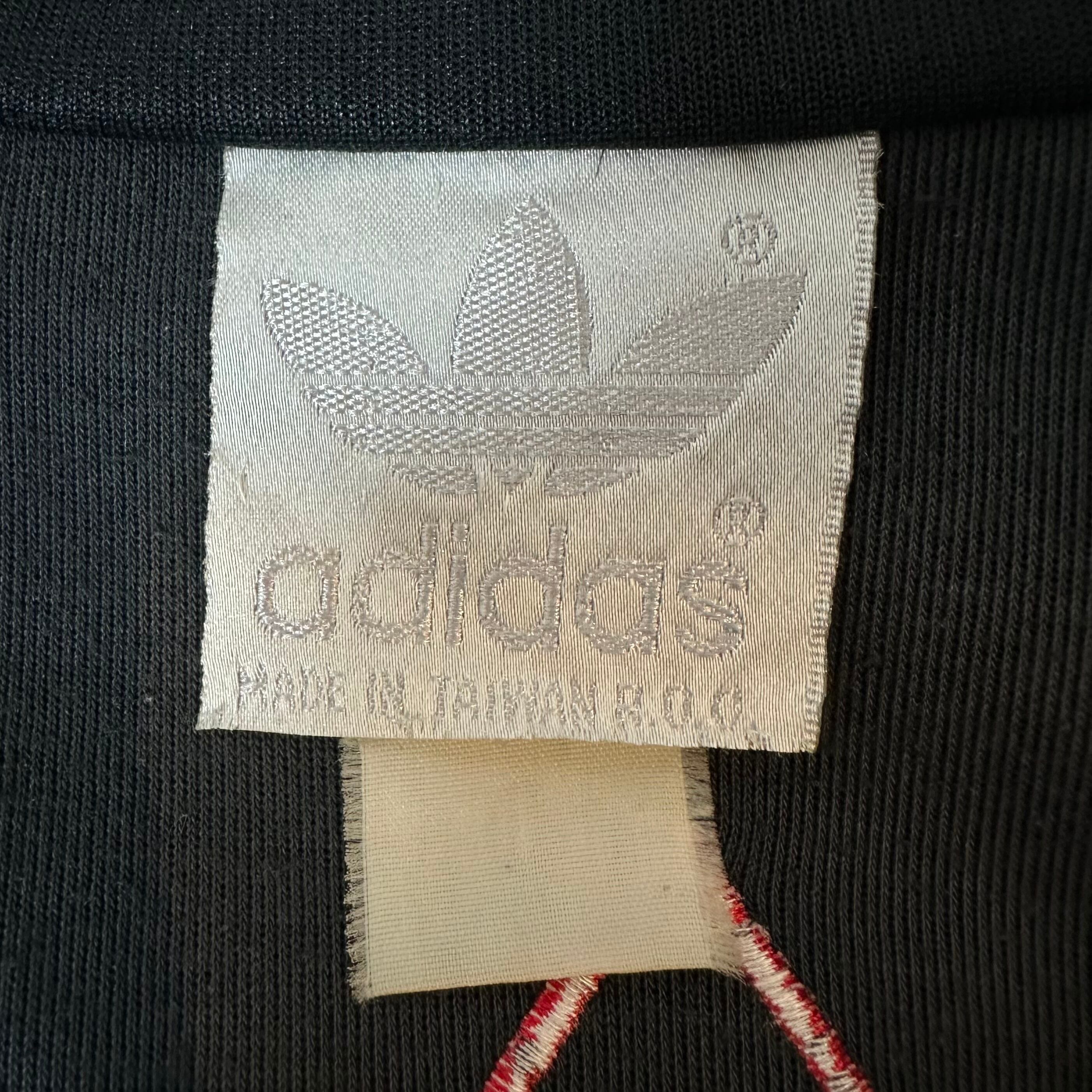 80s★ヴィンテージ★adidas/アディダス★レトロジャージ/トラックジャケット★ビッグロゴ★レッド/赤×黒×グレー★M相当